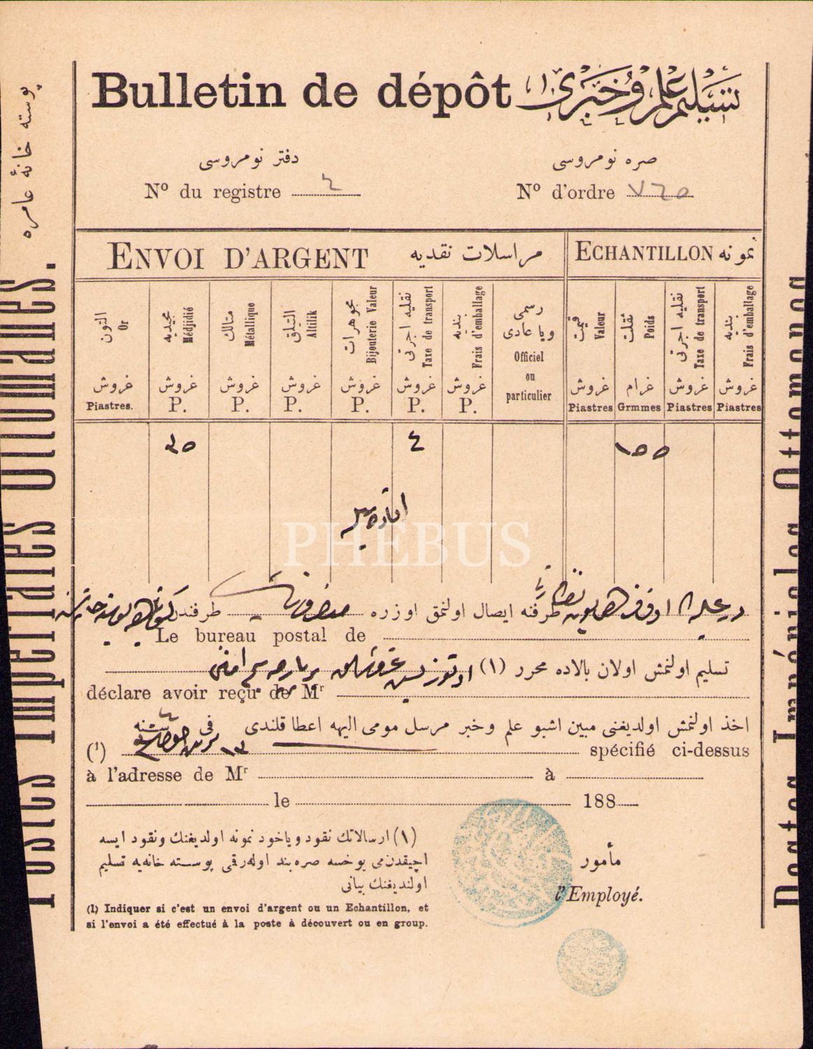 Osmanlıca-Fransızca teslim ilmuhaberi, Kütahya Postahanesi Negatif Damgalı (RRR), 1304 tarihli, 16x20 cm