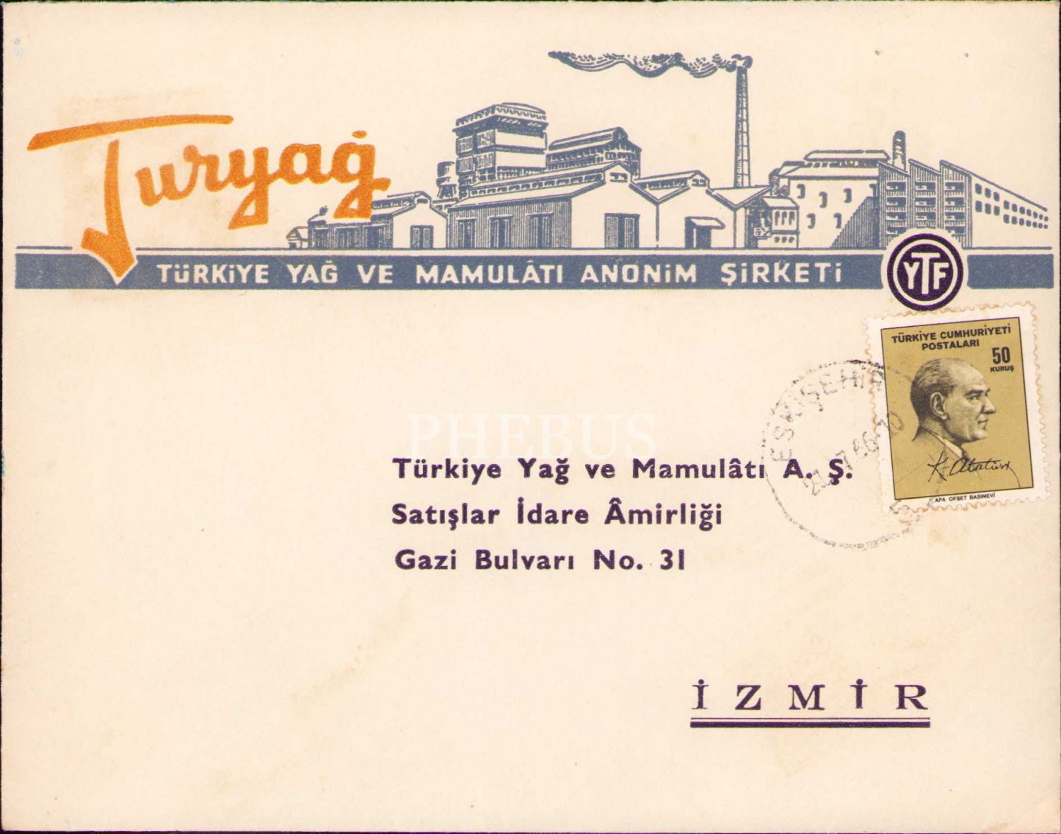 Turyağ Türkiye Yağ ve Mamulâtı Anonim Şirketi antetli zarf, 12x16 cm