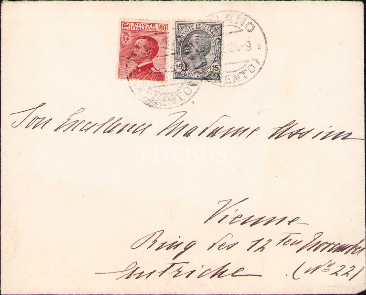 İtalyan pullu, Viyana alıcılı zarf, 11x14 cm, üstten açık haliyle