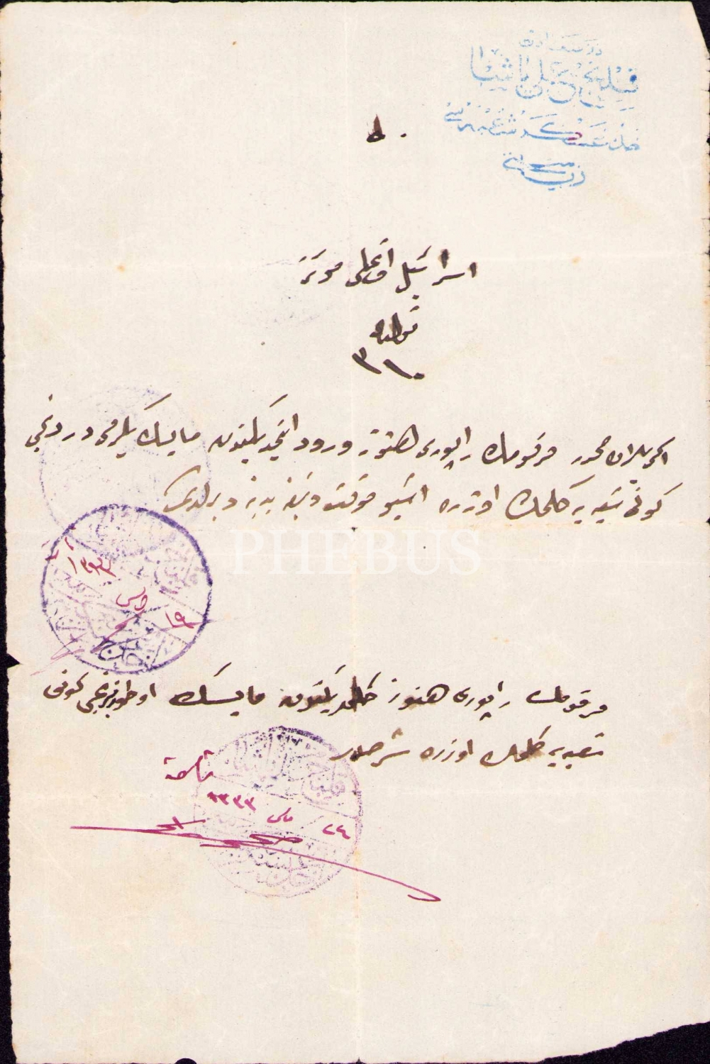 Osmanlıca Dersaadet Ahz-ı Asker [Asker Alım] Şubesi antetli geçici belge, 1333 tarihli, 13x20 cm
