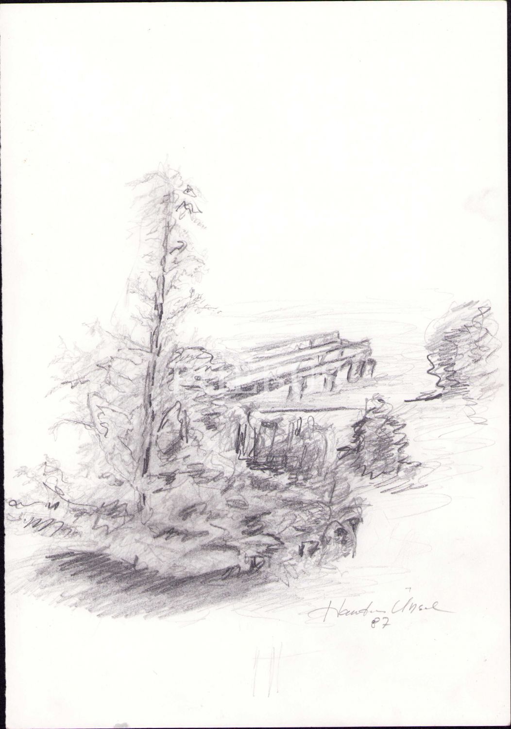 Handan Ünsal imzalı karakalem çalışması, 23x33 cm