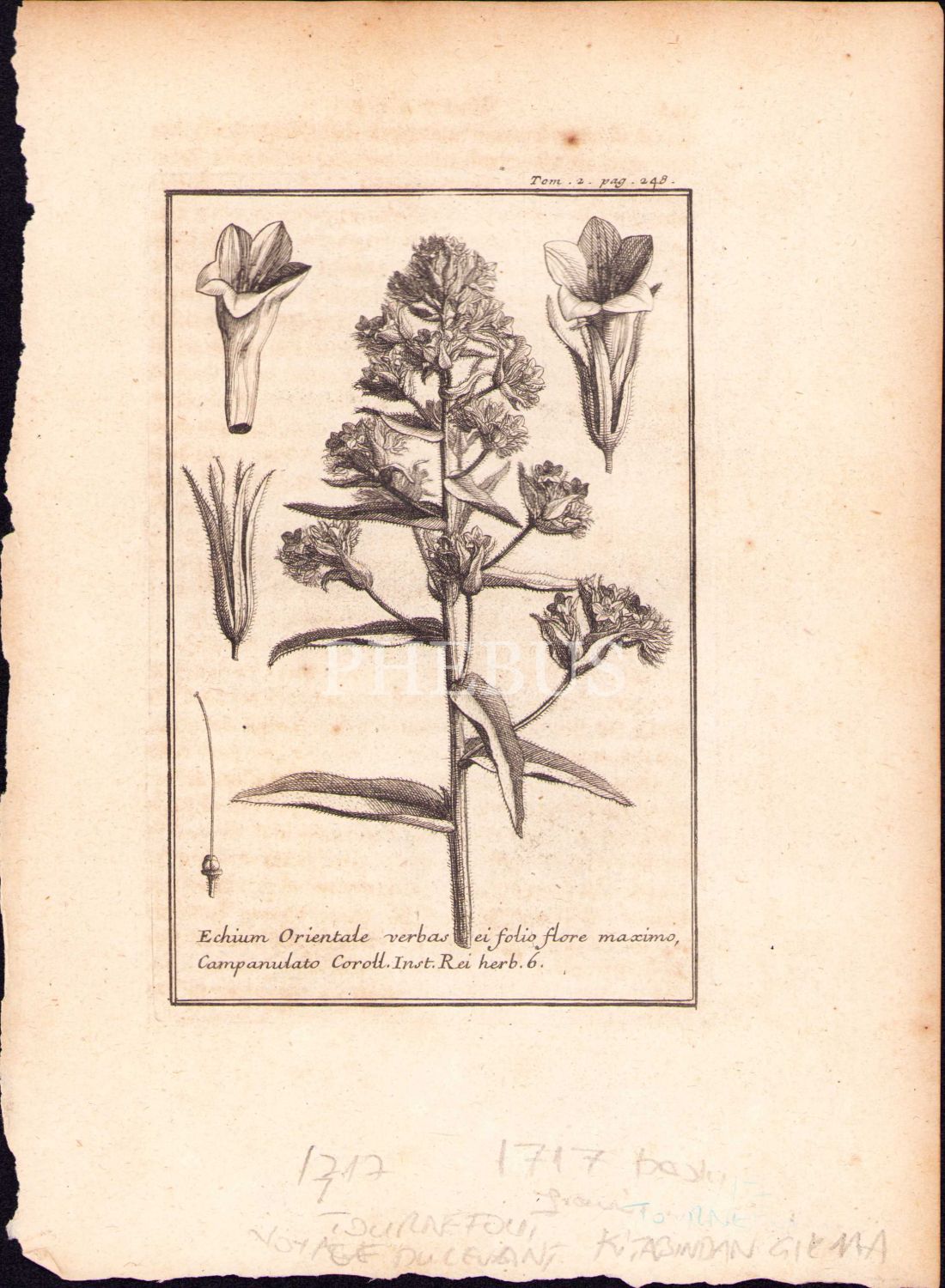Echium orientale çiçeği gravürü, 1717 baskı, kitaptan çıkma, 18x25 cm