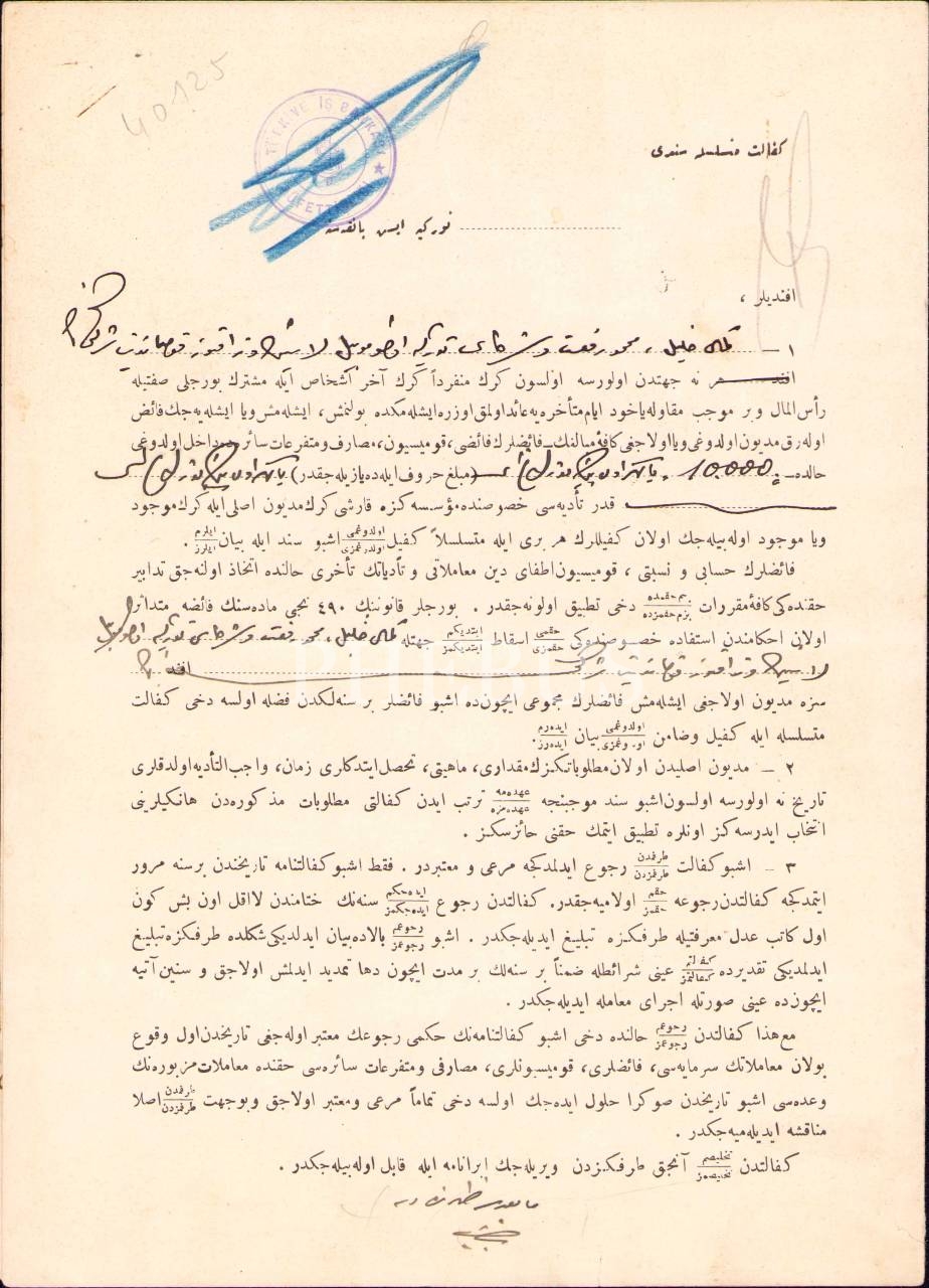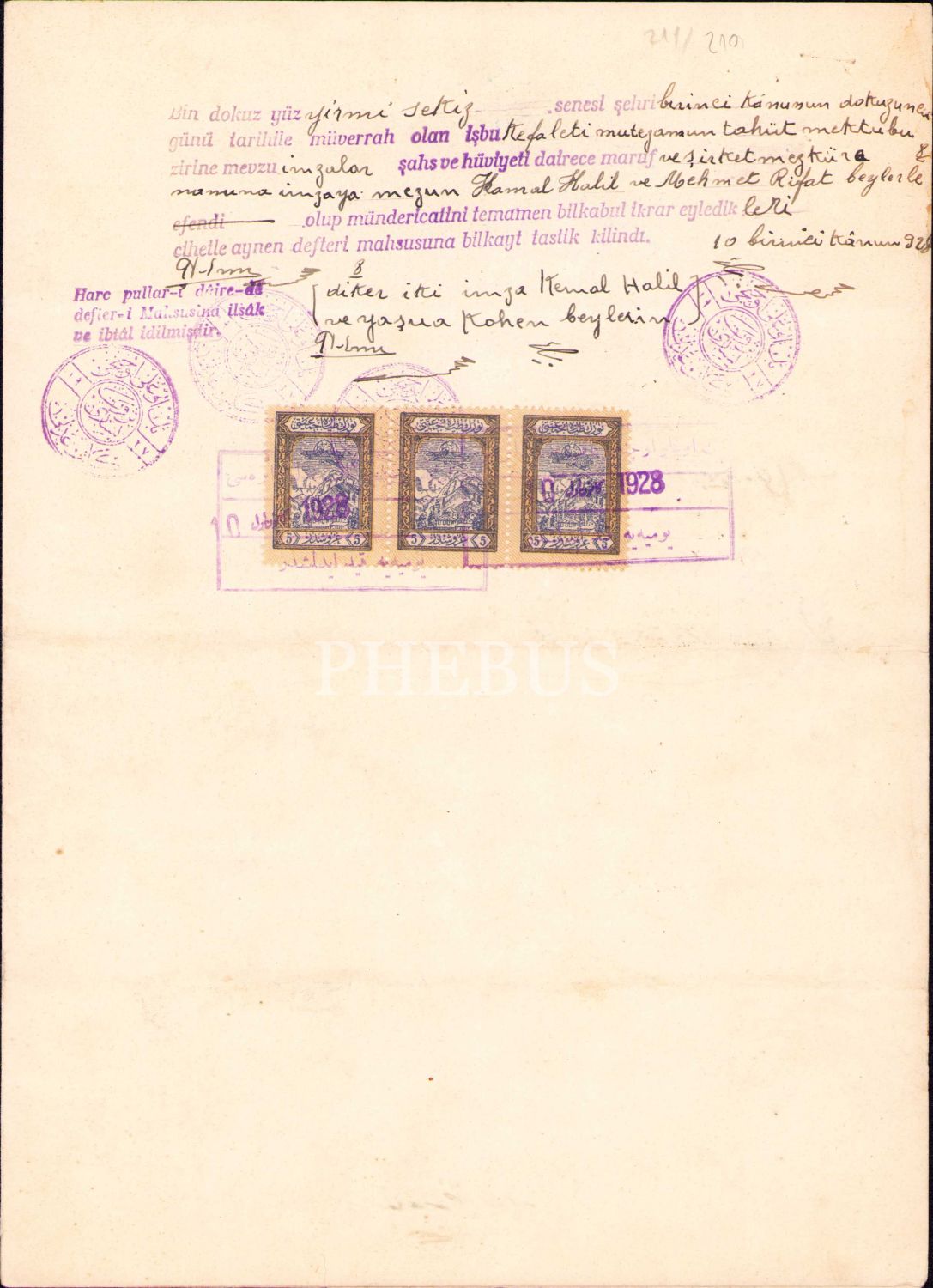 Türkiye İş Bankası Müfettişliği mühürlü Osmanlıca kefalet senedi, 1928 tarihli, 4 sayfa, 20x28 cm