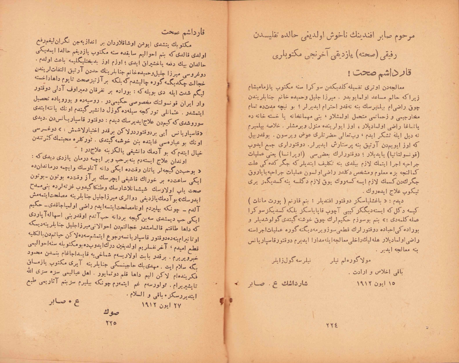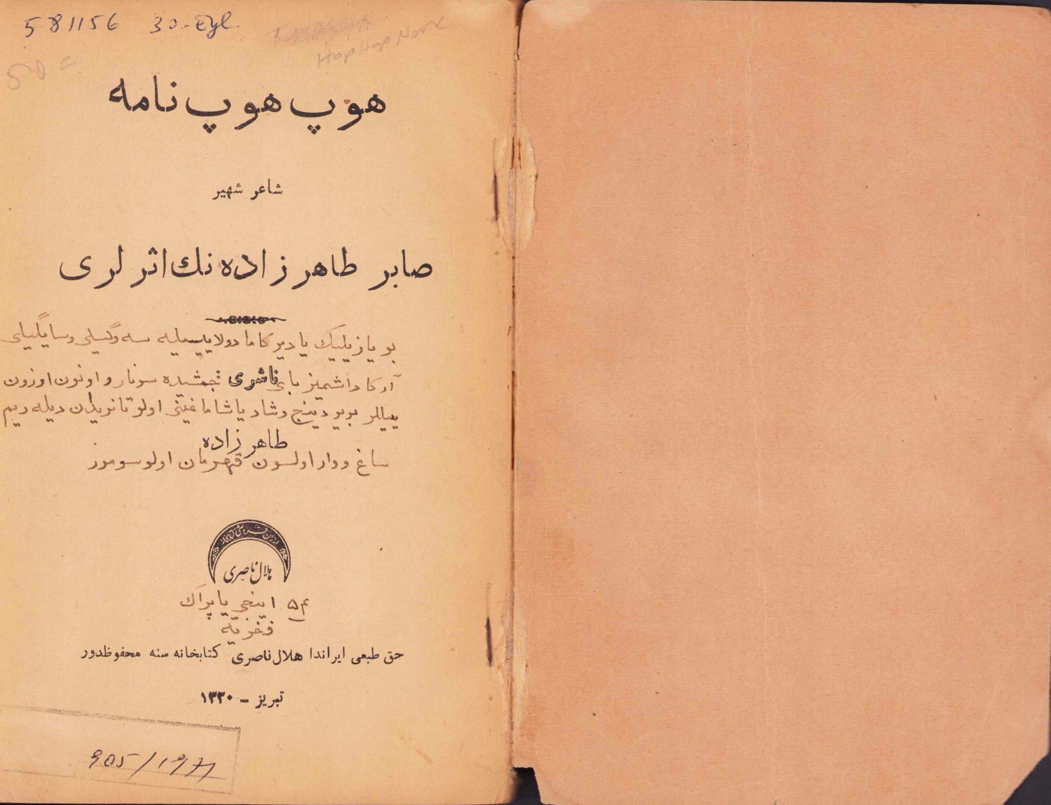 Külliyatı Hophopname, Tahirzade Sabir, Tahirzâde Hilâ Nasıri Kitabhanesi, Tebriz, 1320, Osmanlıca, 225 sayfa, 14x21cm, ÖZEGE; 7701
