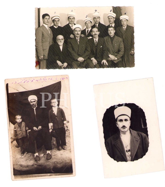 Din adamı konulu 3 adet fotoğraf, ikisinin arkası Osmanlıca yazılı, 1936 ve 1937 tarihli, biri kenardan yırtık haliyle