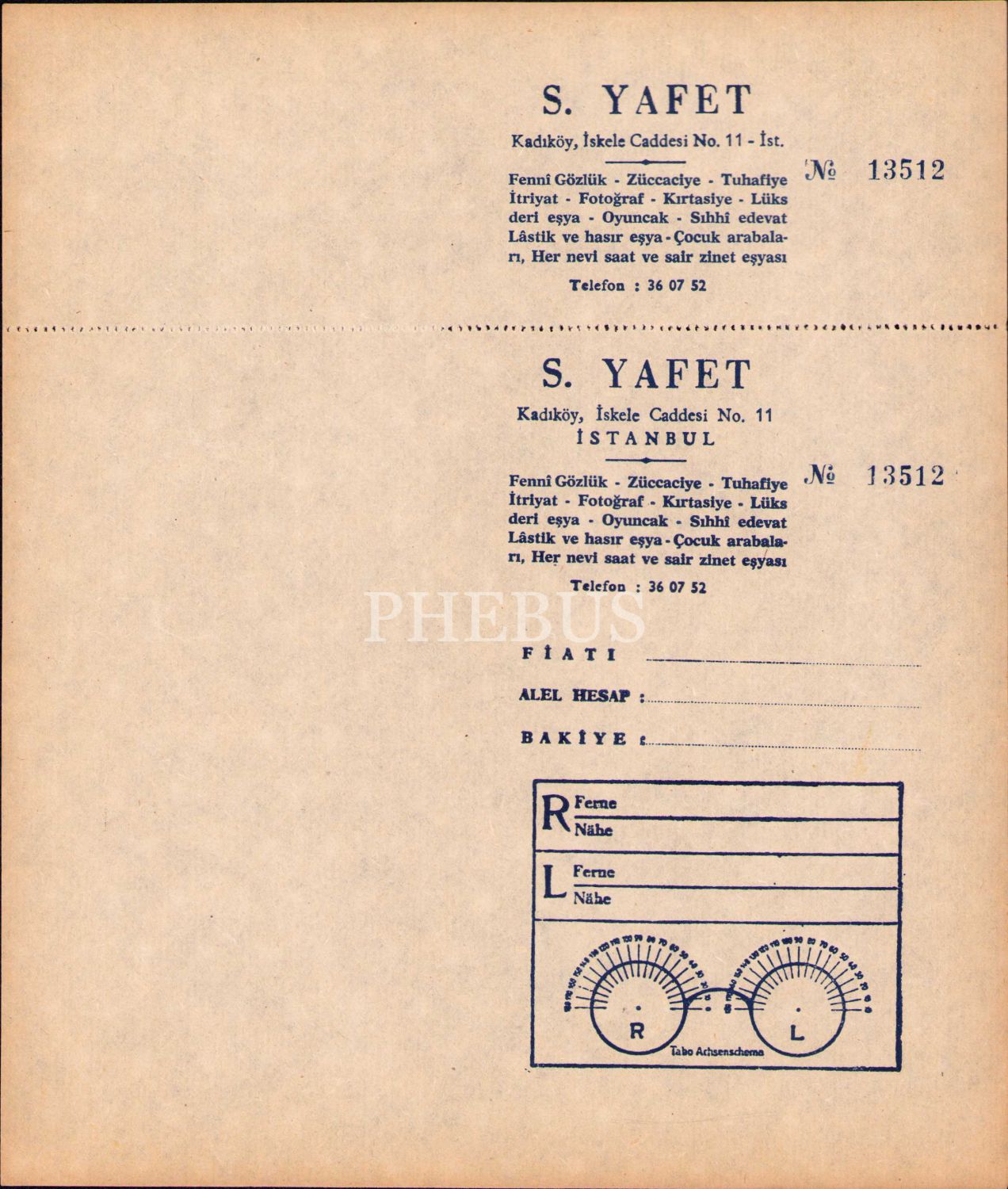 S. Yafet antetli boş fatura, 20x23 cm