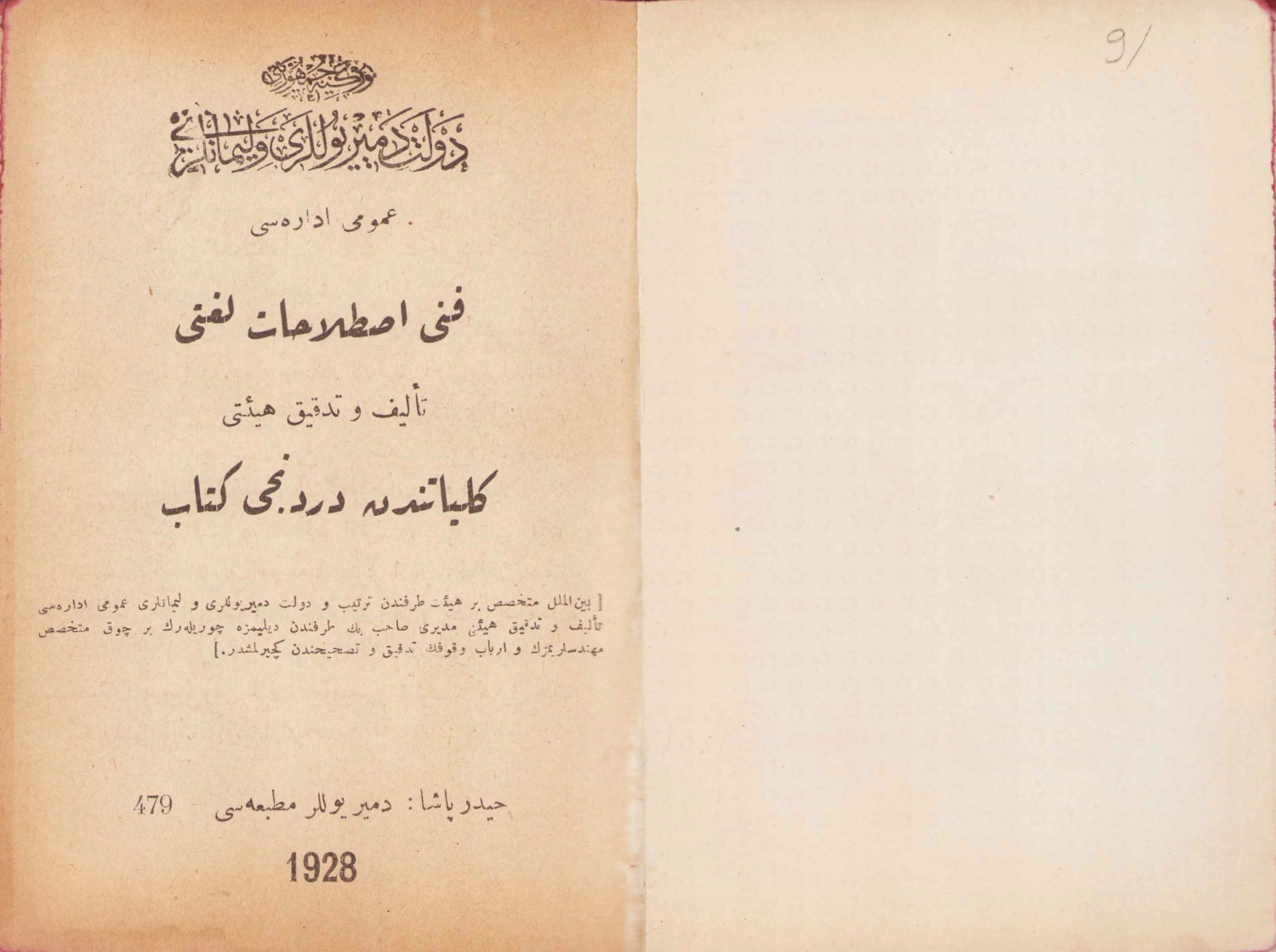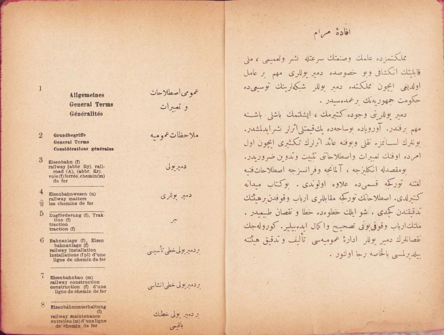 Devlet Demiryolları ve Limanları Umumi İdaresi Fenni Istılahat Lugatı - külliyattan dördüncü kitap, Demiryolları Matbaası, 1928