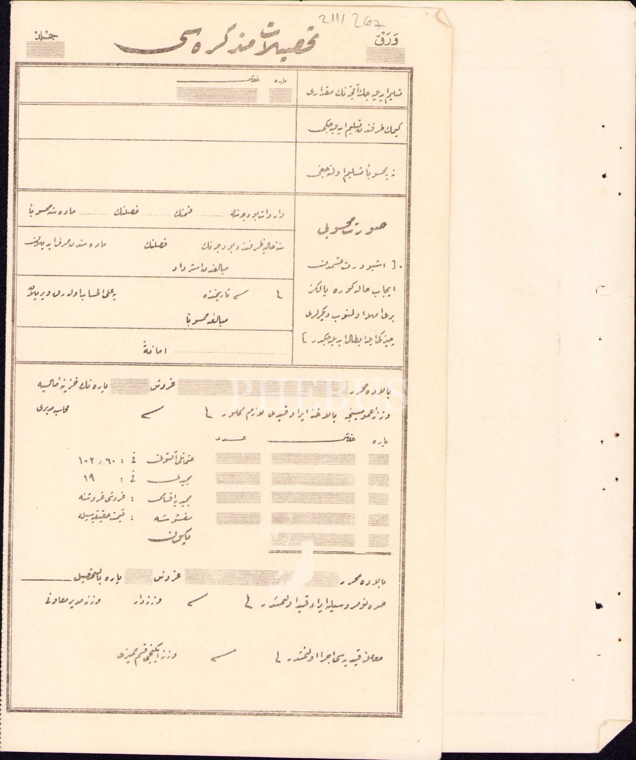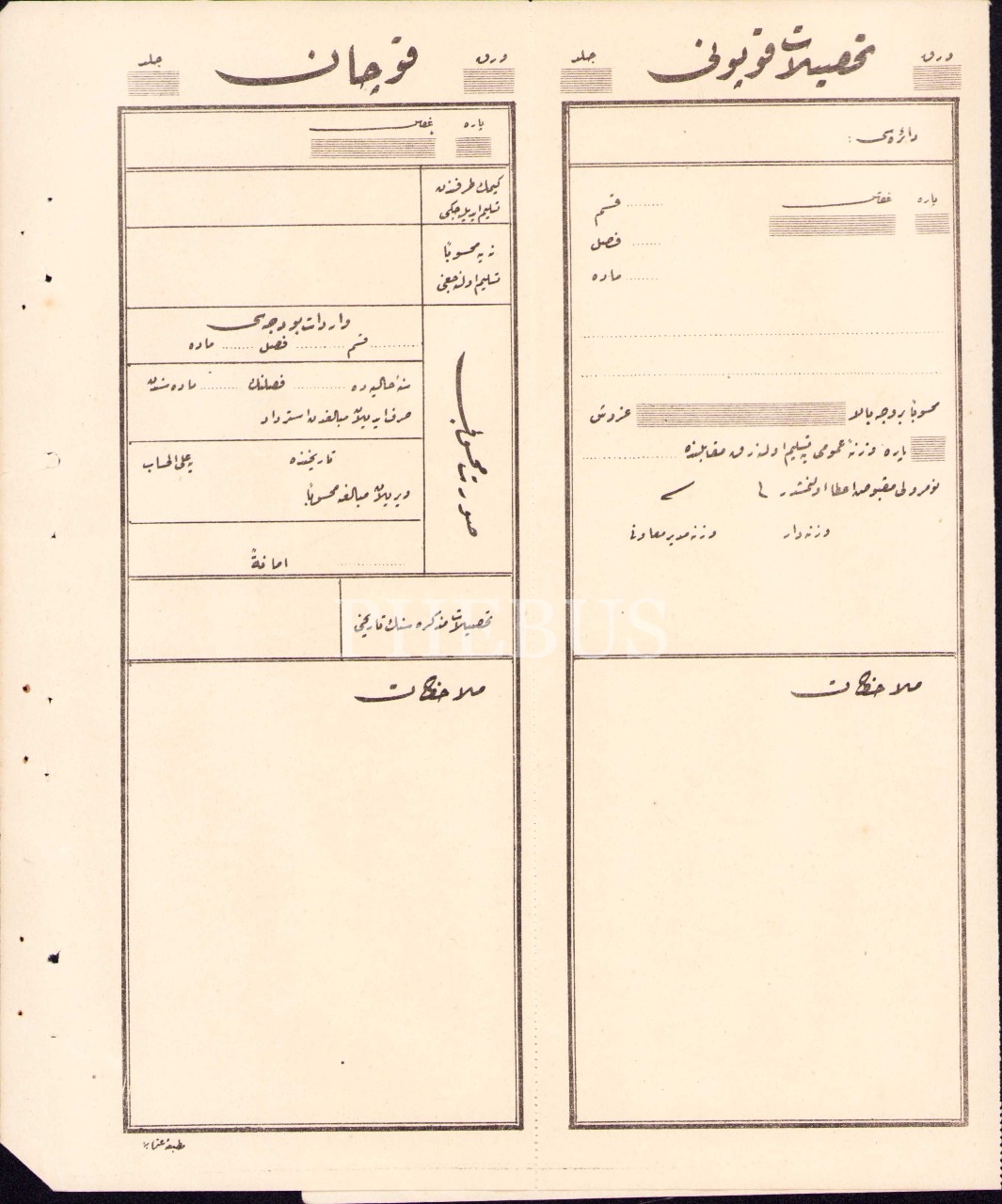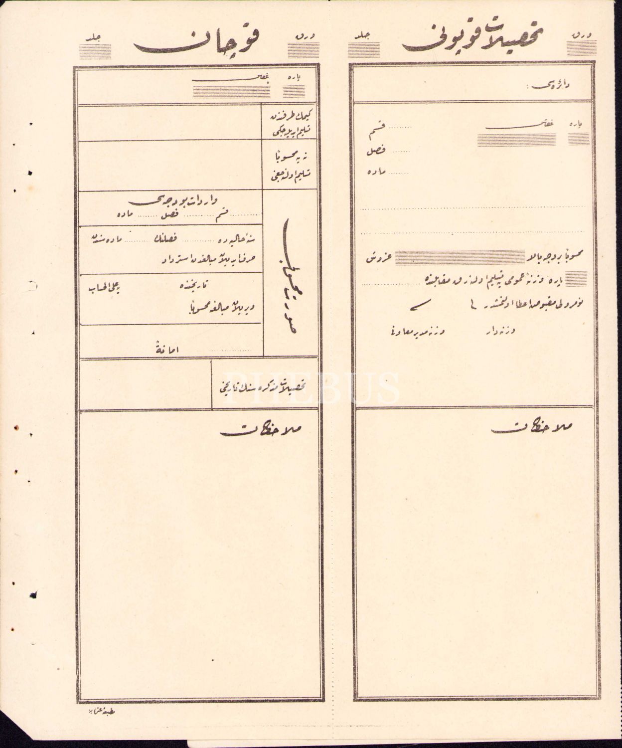 Osmanlıca boş tahsilat makbuzu, 27x39 cm