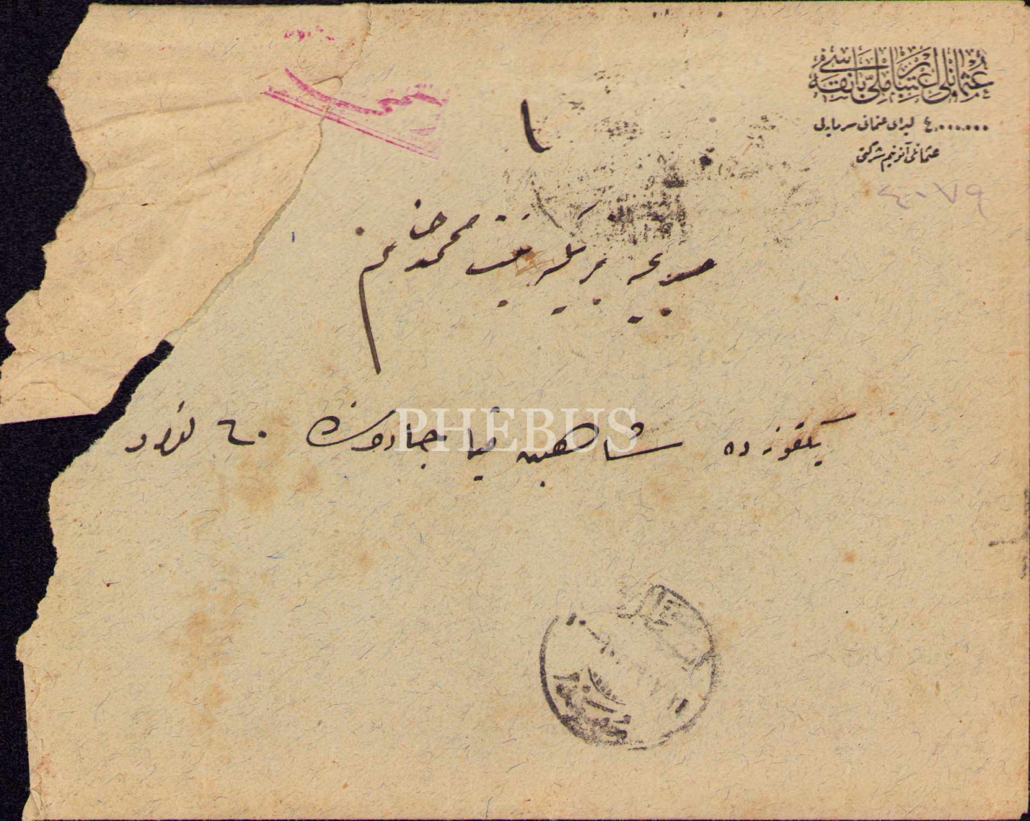 Osmanlı İtibar-ı Millî Bankası antetli zarf, 13x16 cm, epey yıpranmış haliyle