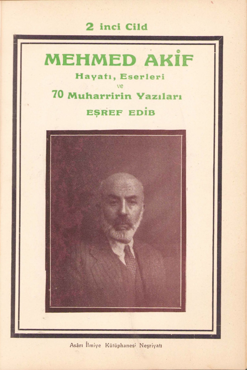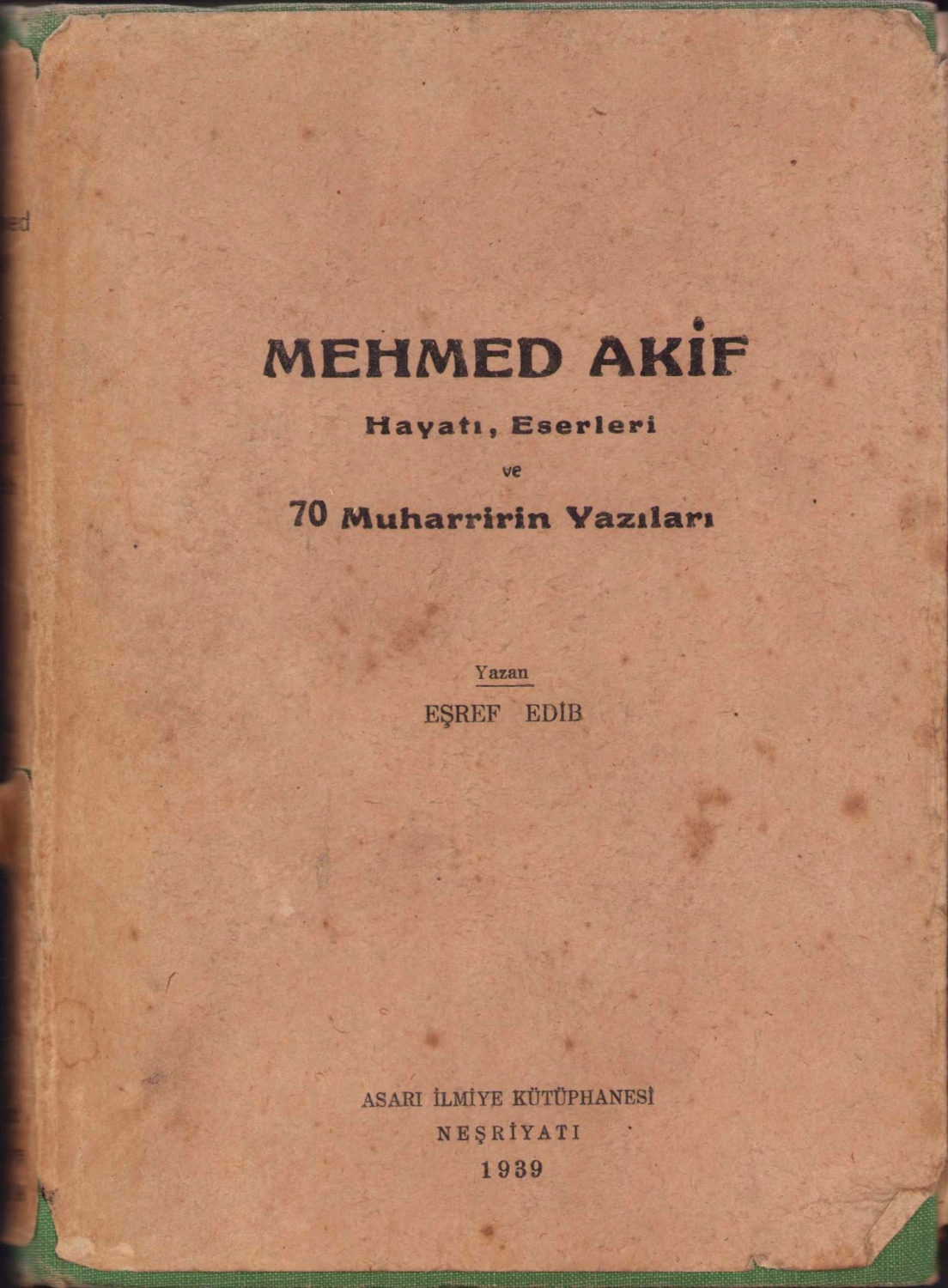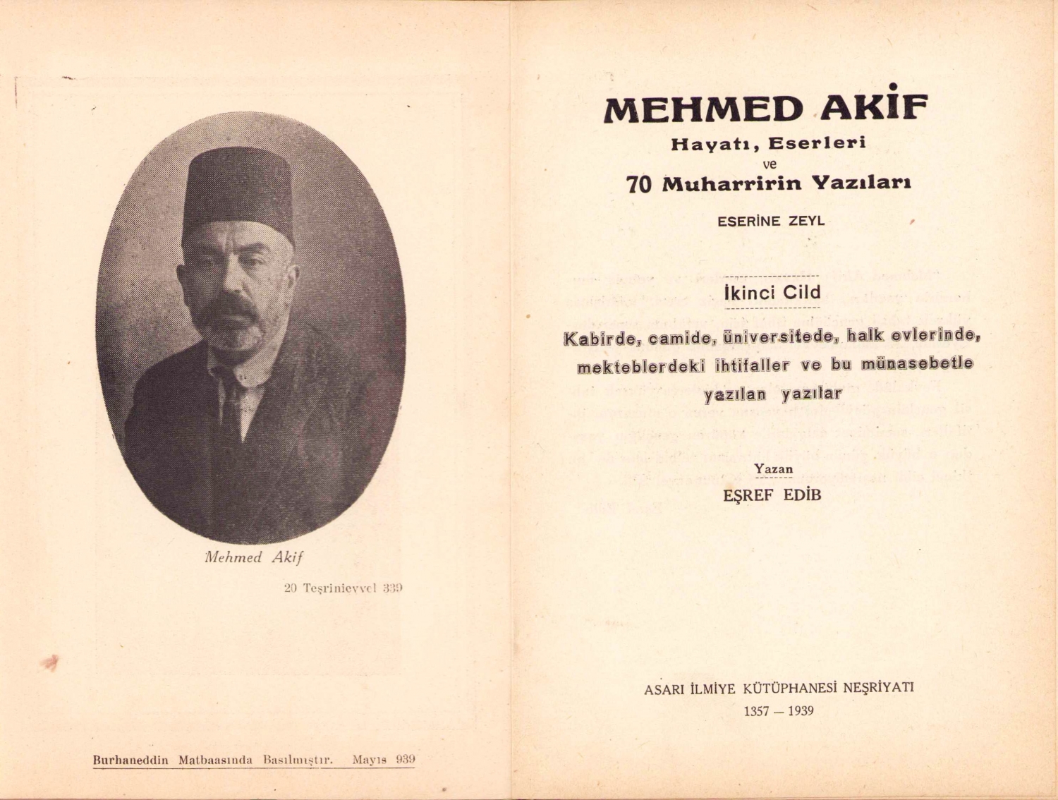 Mehmet Akif Hayatı, Eserleri ve 70 Muharririn Yazıları, Eşref Edip, Asarı İlmiye Kütüphanesi Neşriyatı, 1939,