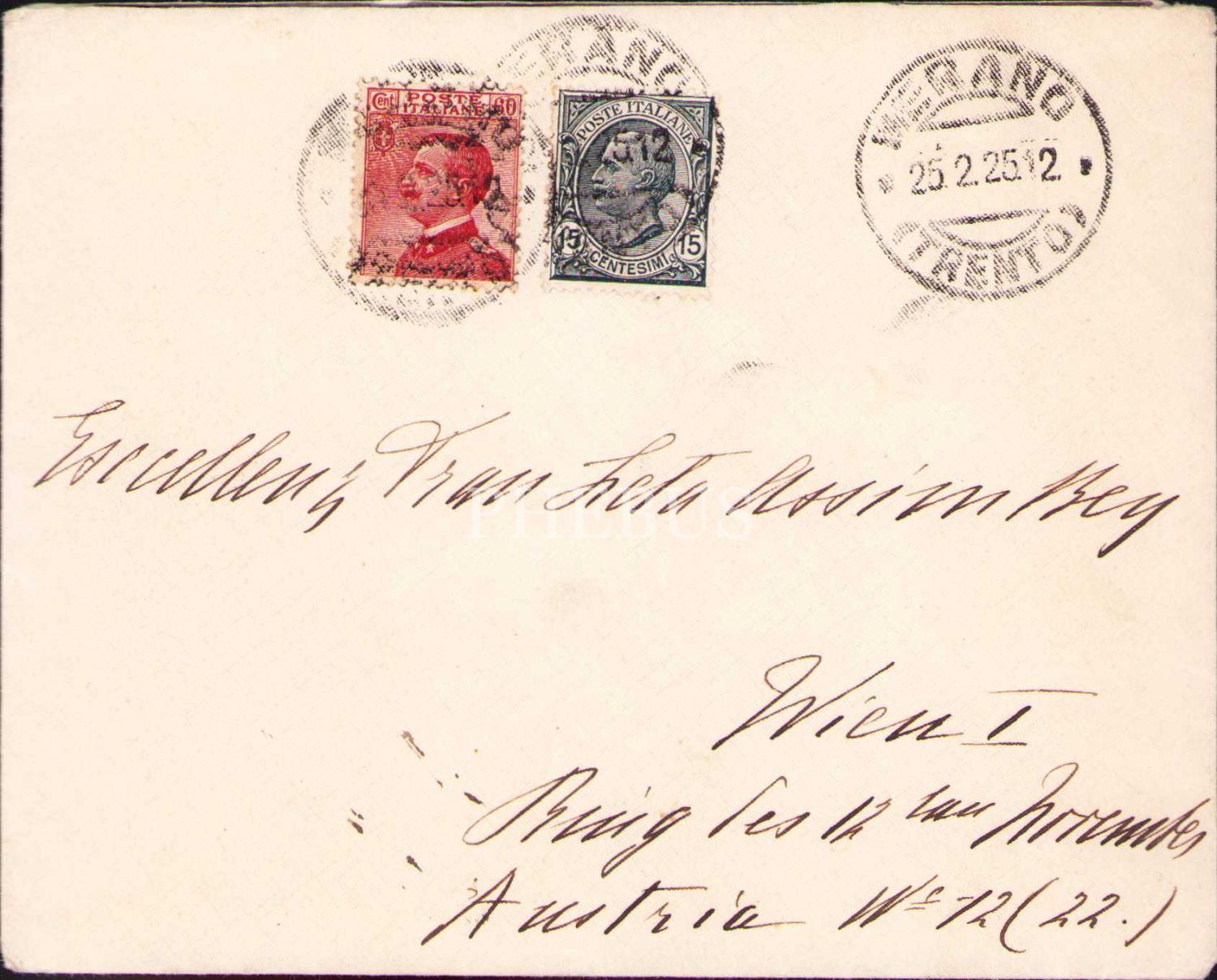 İtalyan pullu ve Viyana alıcılı zarf, 11x14 cm, üstten açılmış haliyle