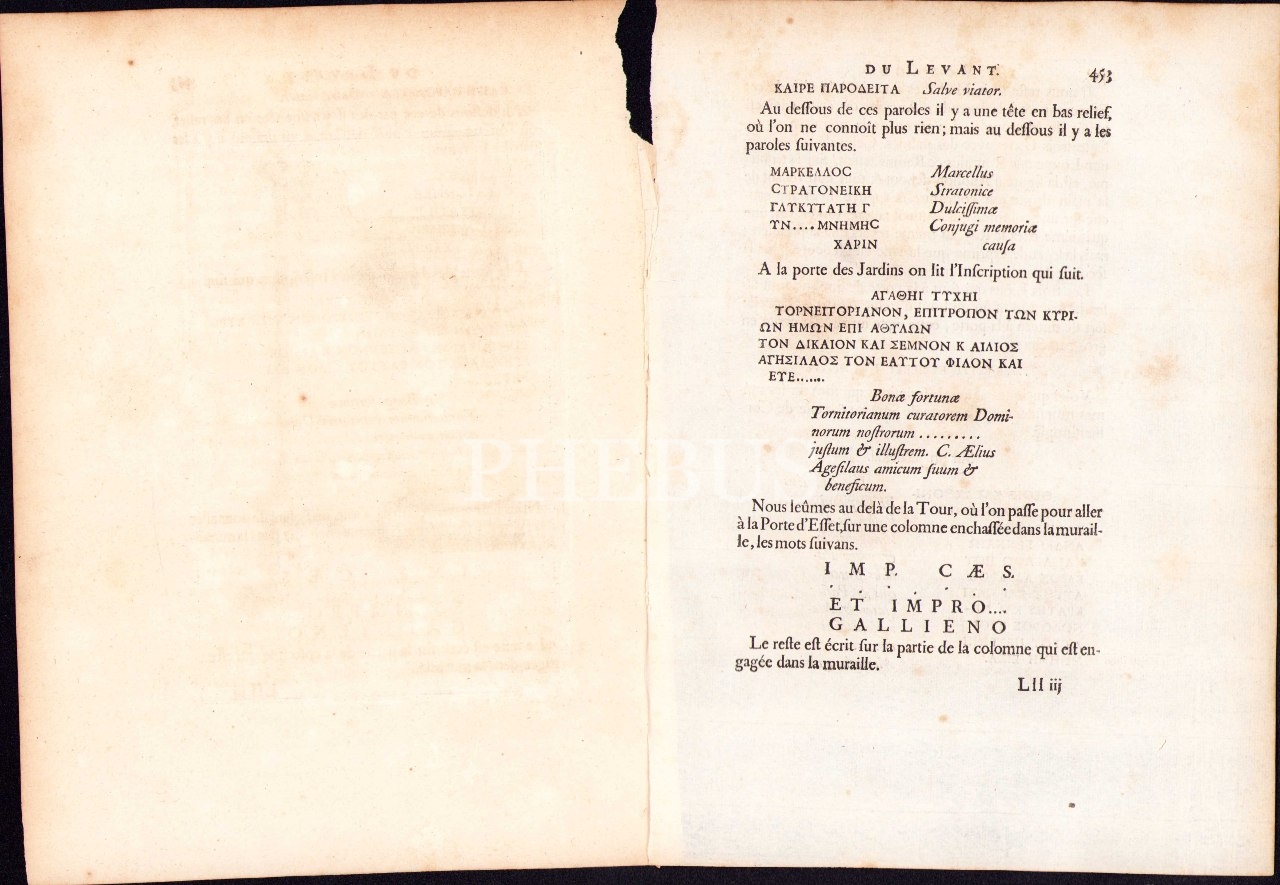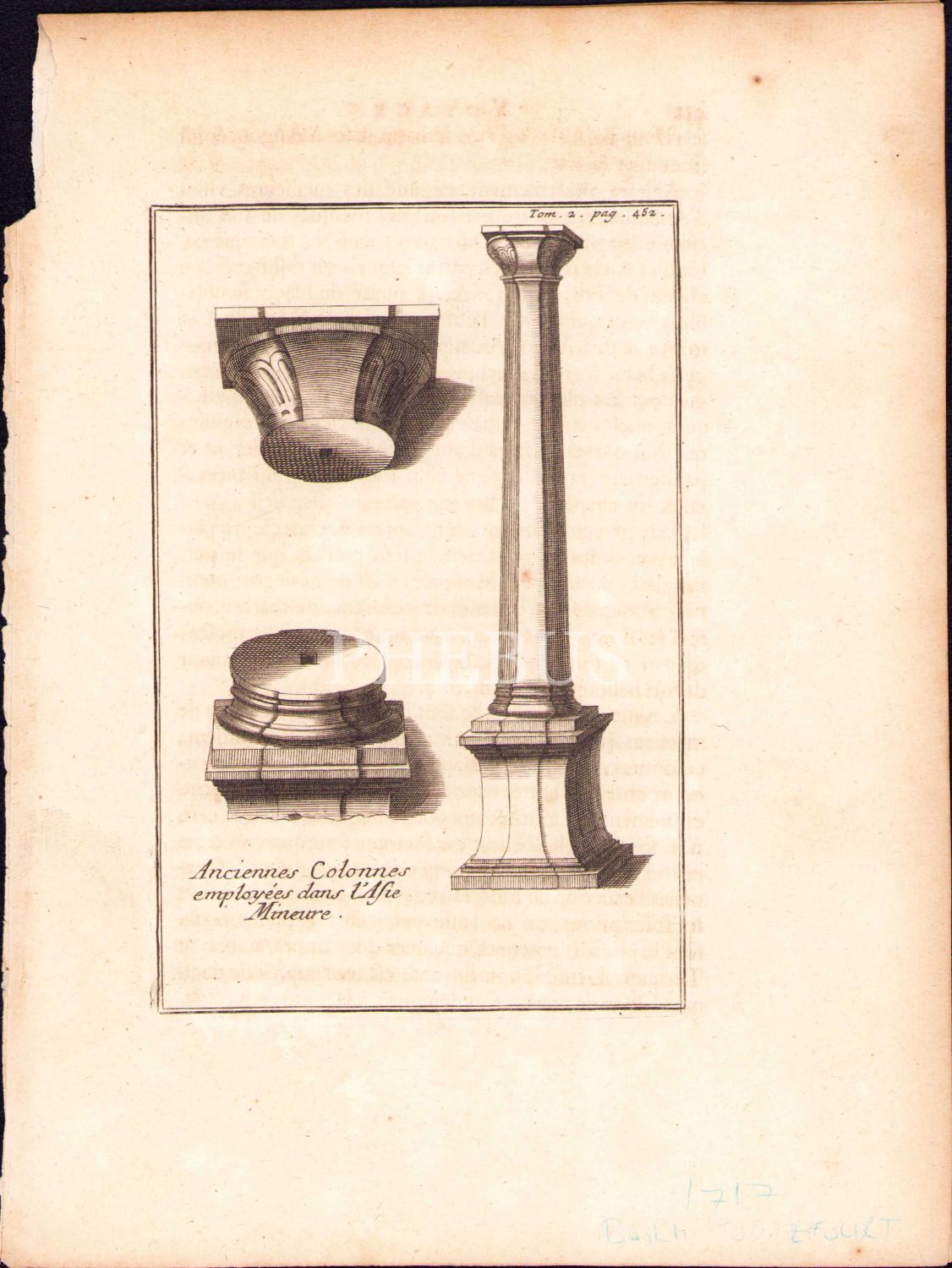 Sütun gravürü ve Fransızca-Rumca metin, kitaptan çıkma, 19x25 cm, yıpranmış haliyle