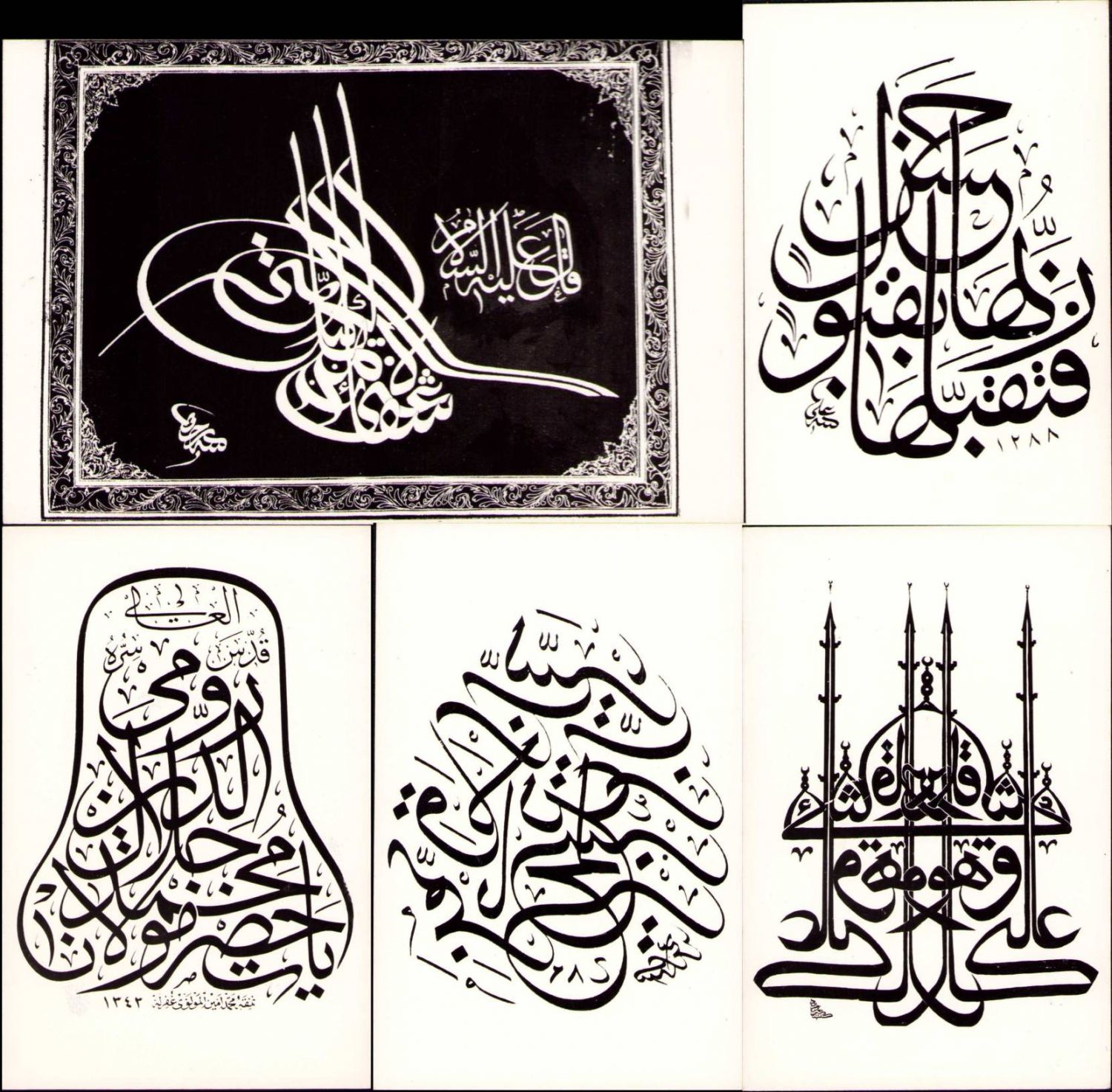 Çeşitli Hattatların Hat Çalışmalarına Ait 5 Adet Baskı Kartpostal