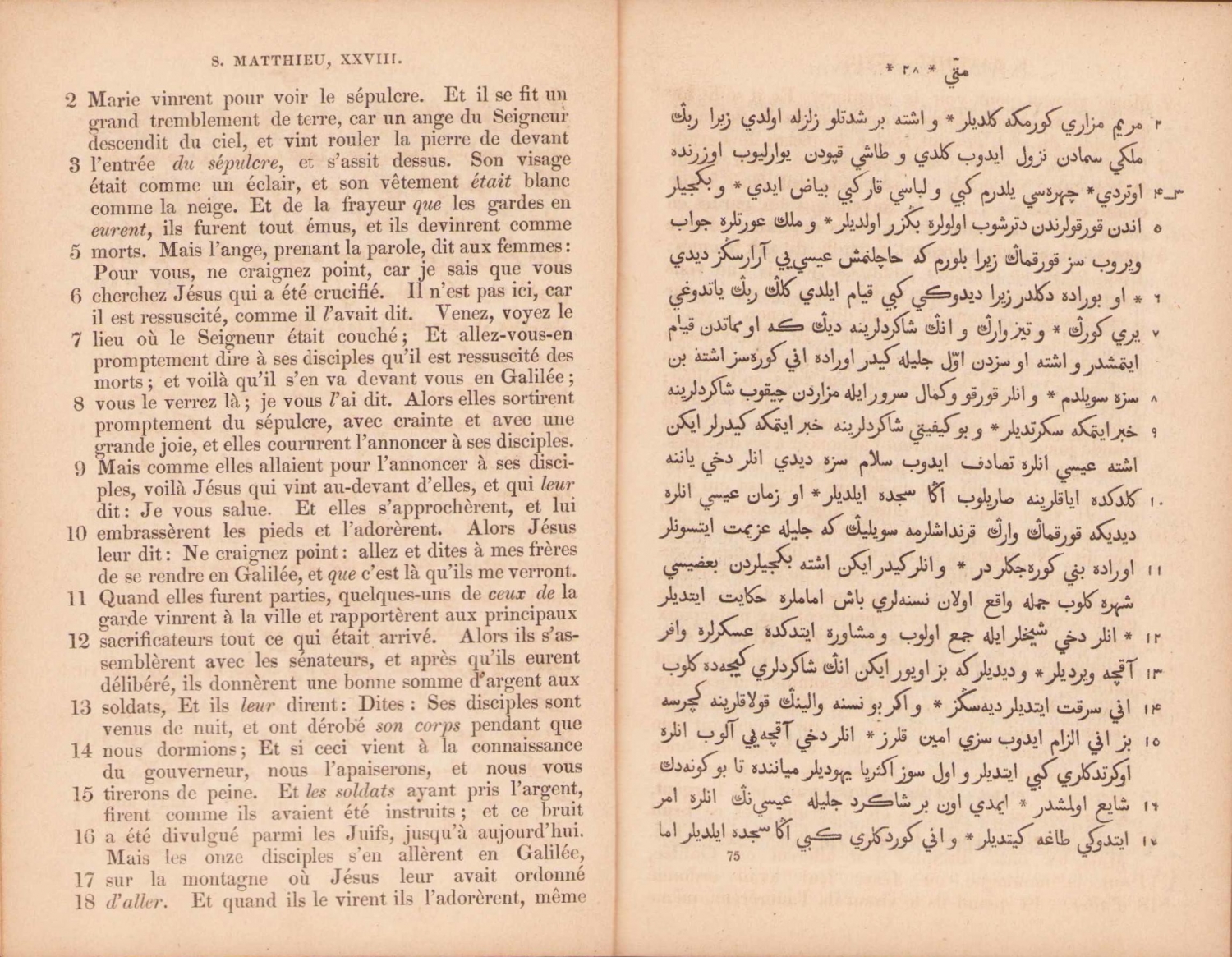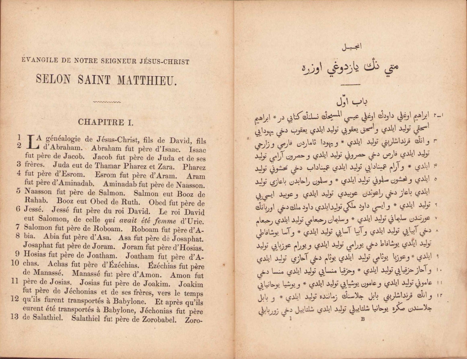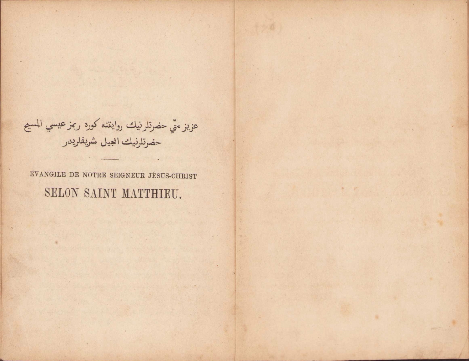 Aziz Matta Hazretlerinin Rivayetine Göre Rabbimiz İsa El-Mesih Hazretlerinin İncil-i Şerifleridir, Osmanlıca - Fransızca, sırtı yıpranmış, 80 sayfa, 10x15cm