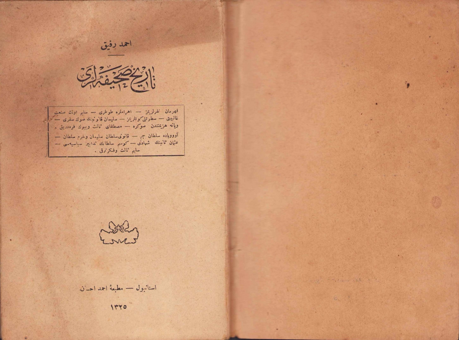 Tarih-i Osmani Kütüphanesi :2 - Tarih Sahifeleri, Ahmed Refik, Matbaa-i Ahmet İhsan, İstanbul, 1325, cilt kopuk, Osmanlıca, 144 sayfa, 12x18cm, ÖZEGE; 19755