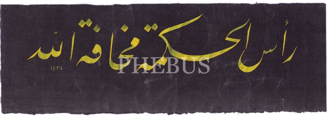 Ta'lik Yazı, "Ra'sü'l-hikmeti mehâfetullah [Hikmetin başı Allah korkusudur], 1438 tarihli, 14x41 cm