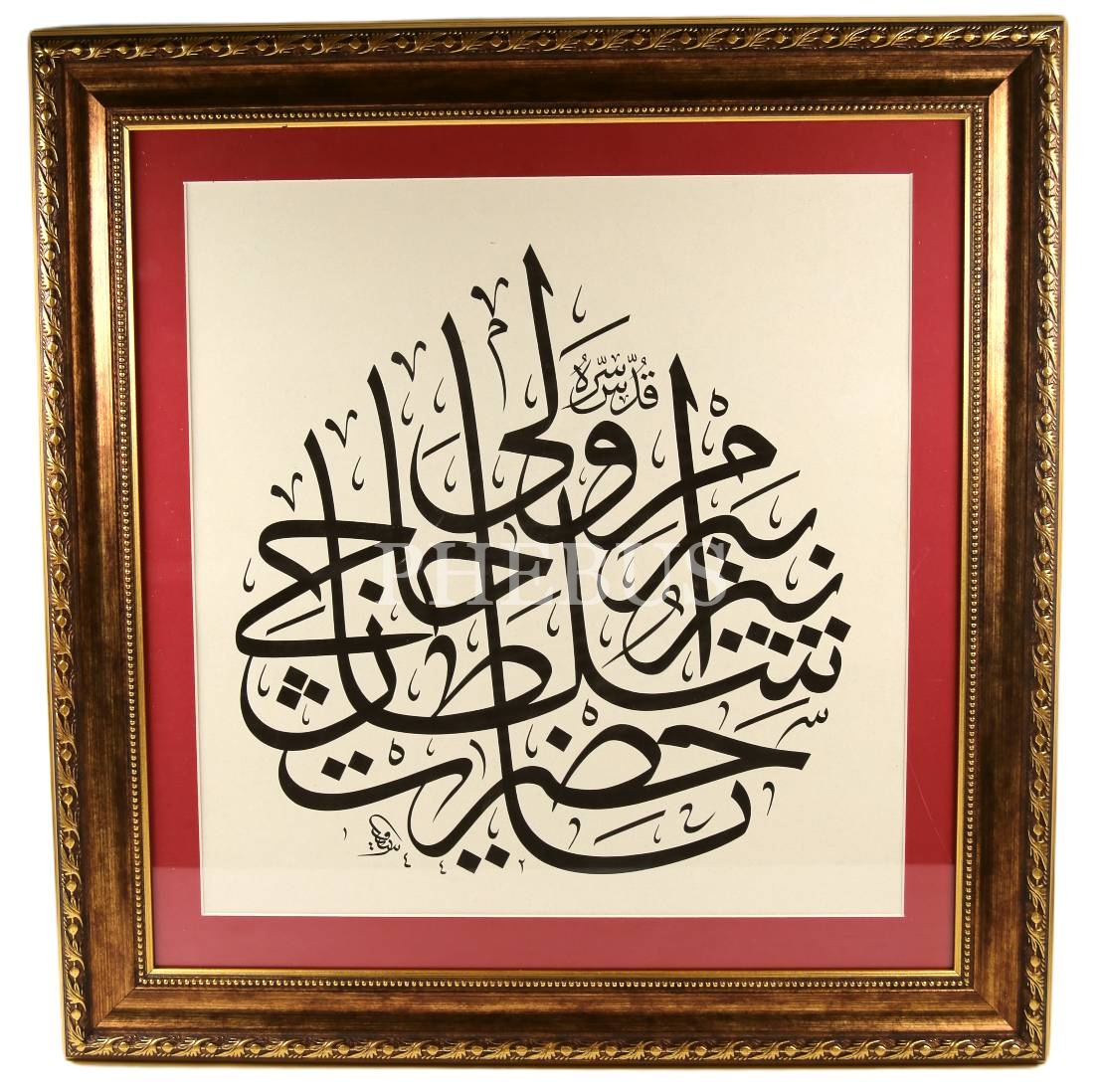 Celî Sülüs Yazı, "Ya Hazret-i Pir Sultan Hacı Bayram Veli'', Hattat Seyfi Mirzaoğlu, 1442 tarihli, çerçeveli, yazı: 44x46 cm, çerçeve: 63x66 cm