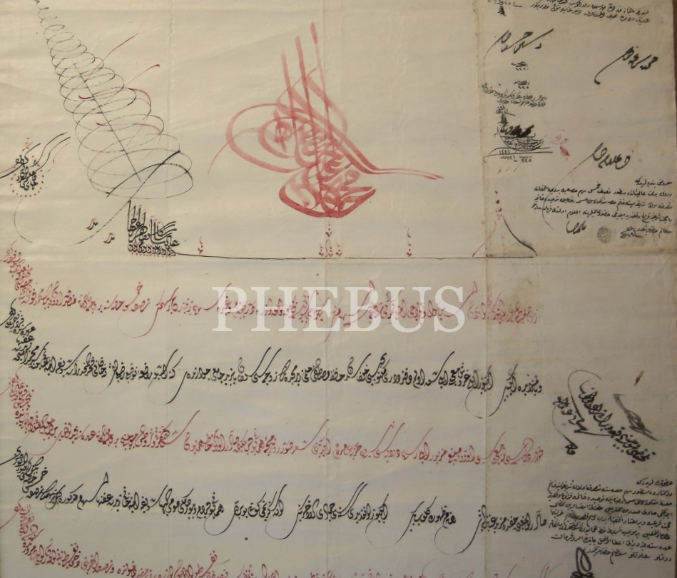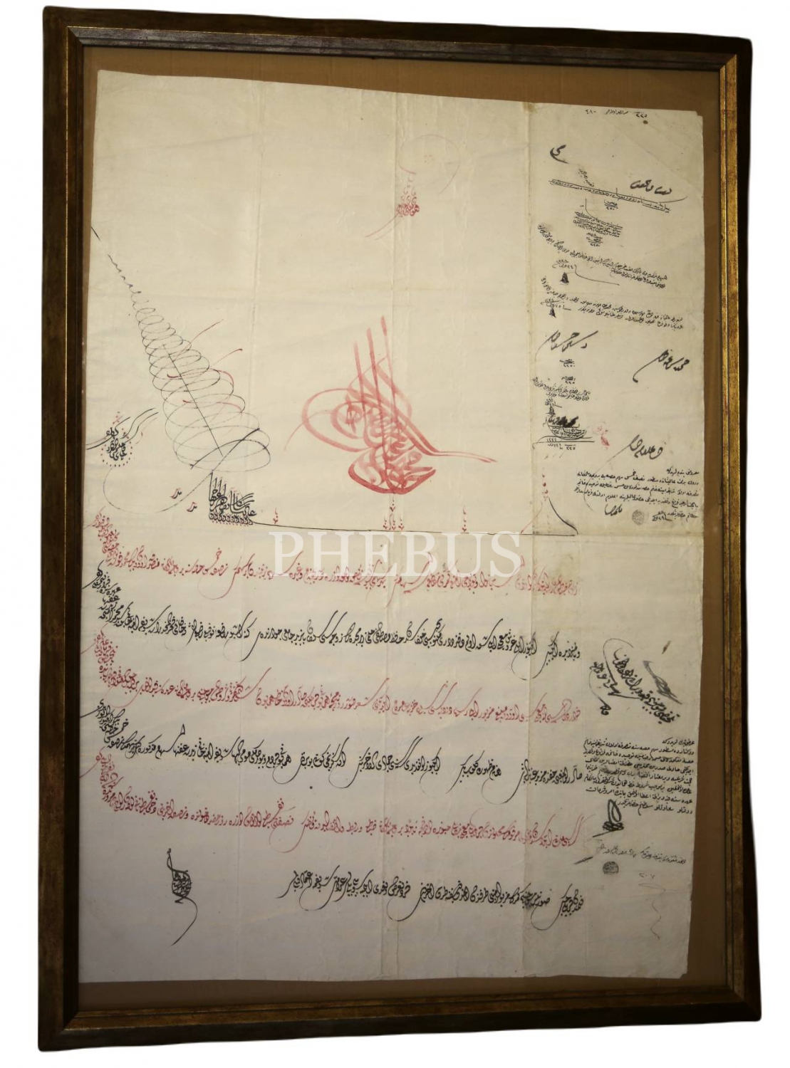 İkinci Mahmud El Çekme Tuğralı Berat, Şerif Emine Hanım'a ait, 1237 tarihli, 54x77 cm