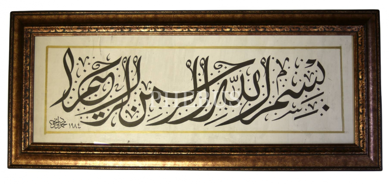 Celî Divanî Besmele, Mahmud Öncü ketebeli ve 1984 tarihli, çerçeveli, yazı: 31x94 cm