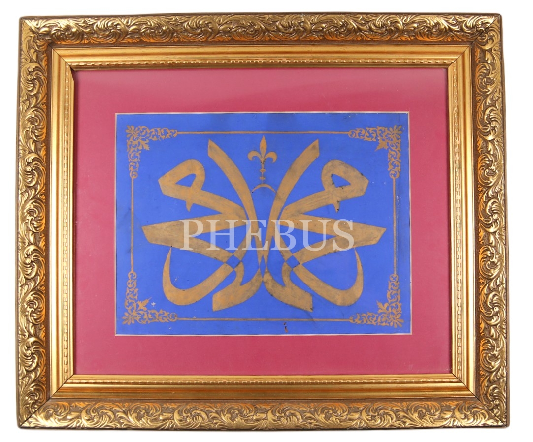 Celî Sülüs Müsennâ Zerendûd Yazı, "Muhammed", çerçeveli, yazı: 23x31 cm