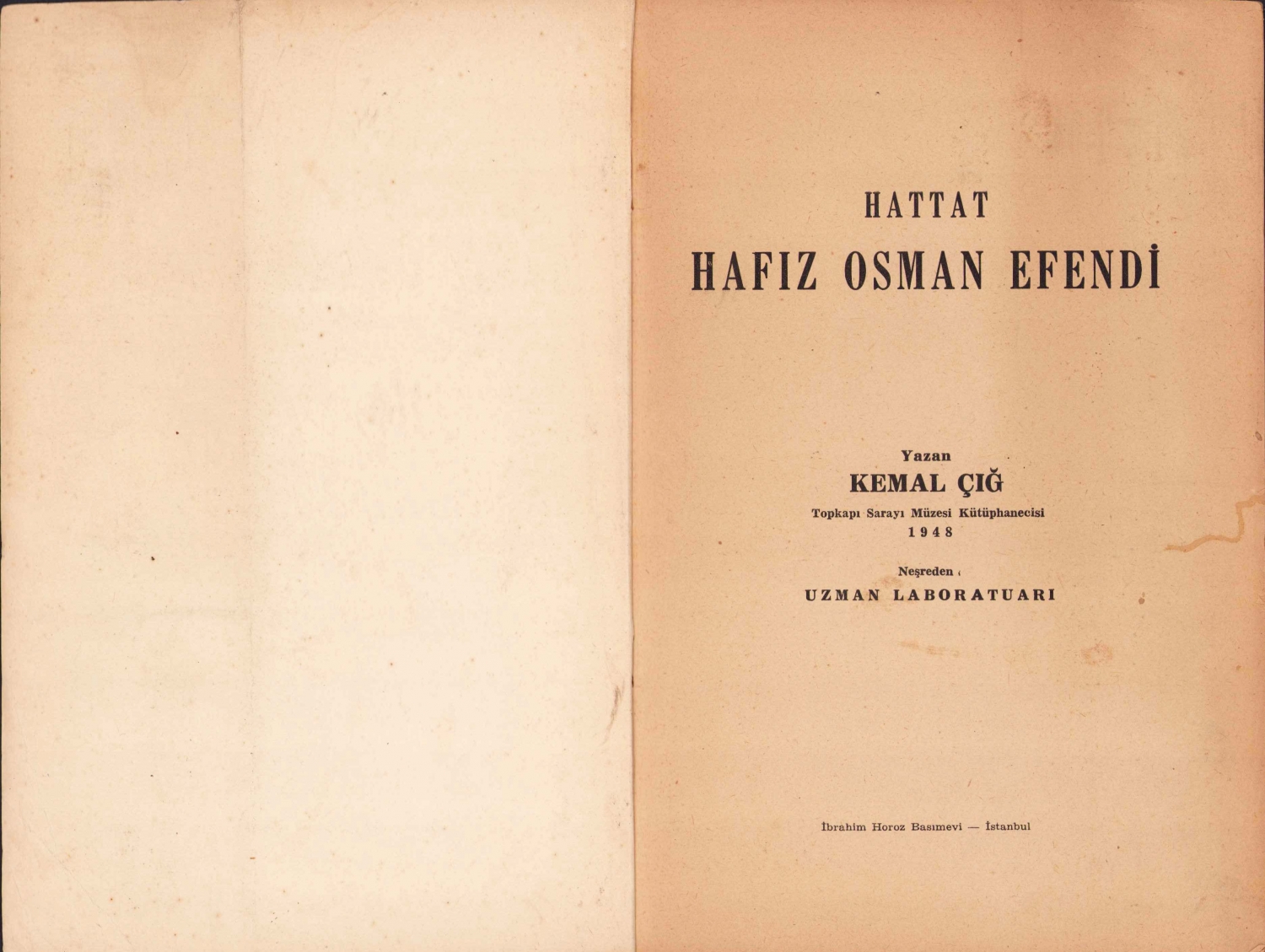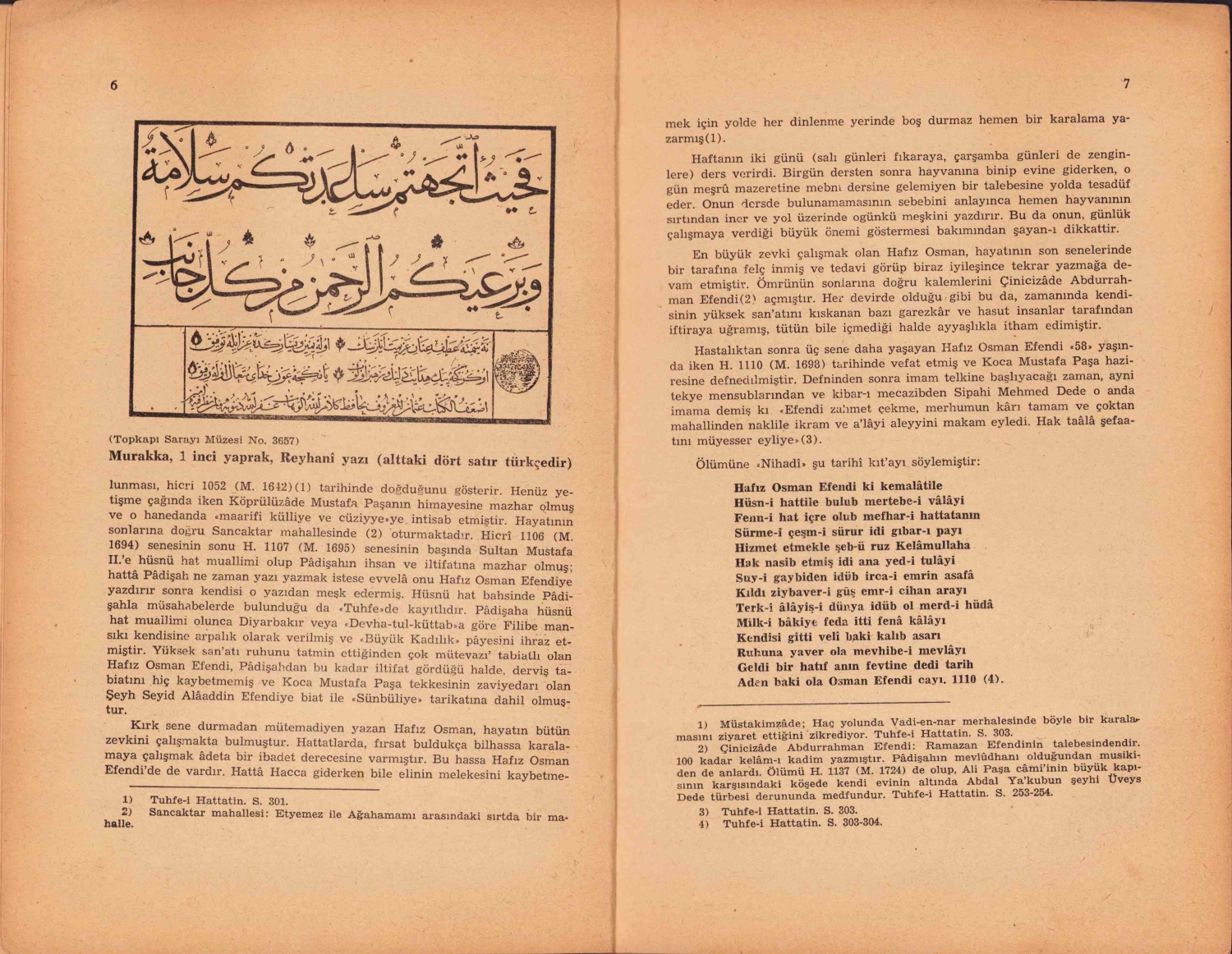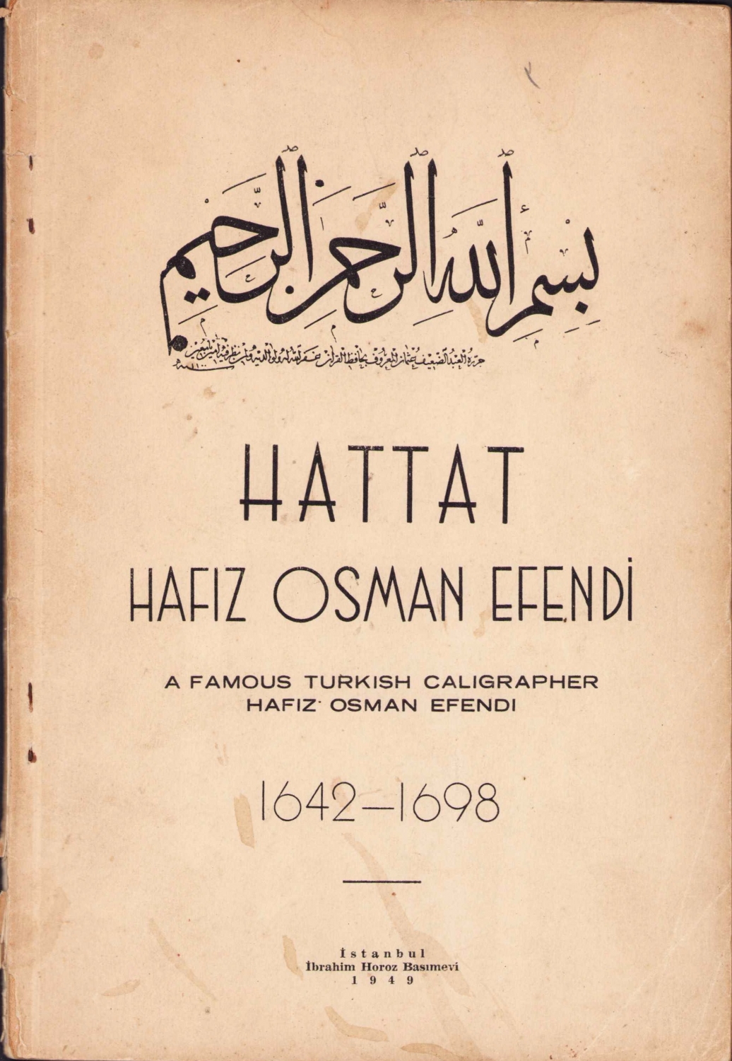 Hattat Hafız Osman Efendi 1642 - 1698, İstanbul, 1949, arapça besmele yazılı kapak, 18 sayfa + 15 sayfa görsel ekli, 16x24cm