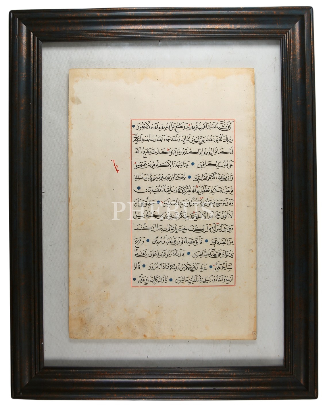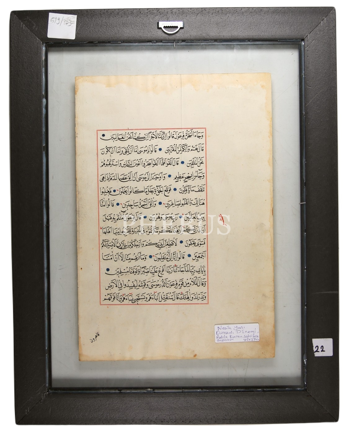 Celî Nesih Âyet-i Kerîmeler, yazı: 15x25 cm, çerçeve: 47x60 cm, camı kırık haliyle
