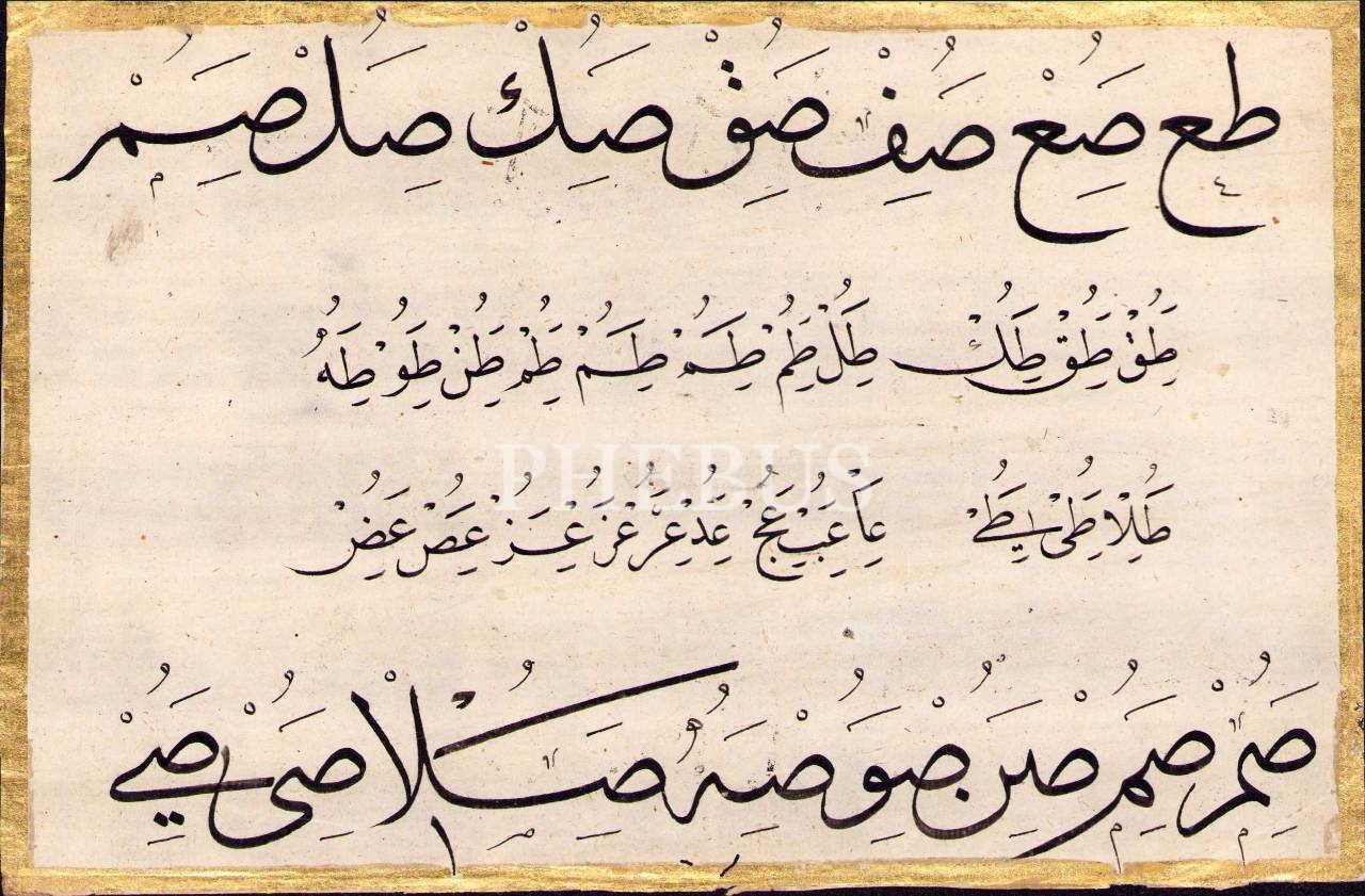 Sülüs-Nesih Hurufât Meşki, altın cetvelli, 14x21 cm