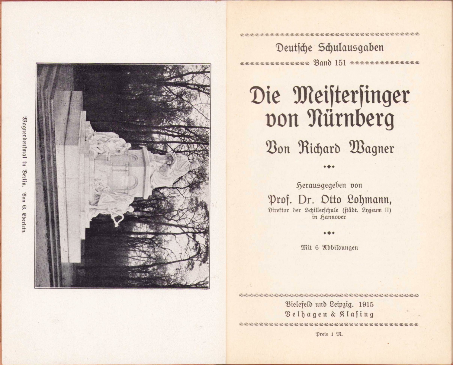 Die Meistersinger von Nürnberg, Rİchard Wagner - Otto Lohmann, Velhagen & Klasing, 1915, Almanca, 124 sayfa, 11x16cm