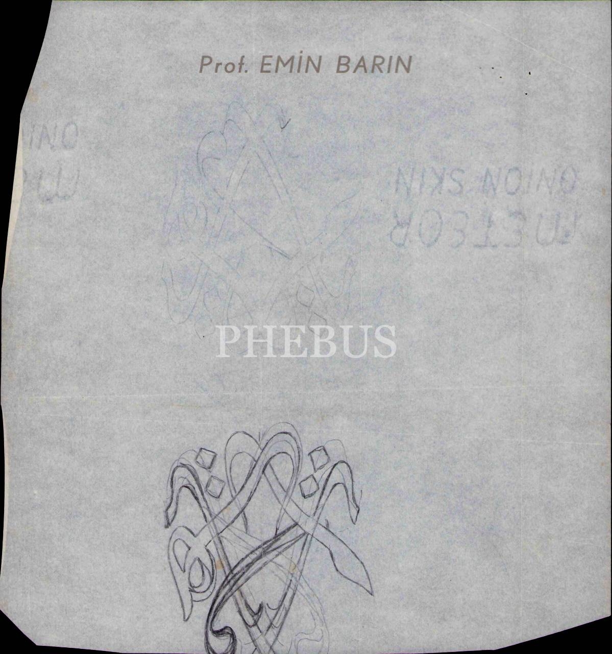 Prof. Emin Barın Antetli Kâğıtta Sülüs İstifi Yazı Eskizi, 19x24 cm