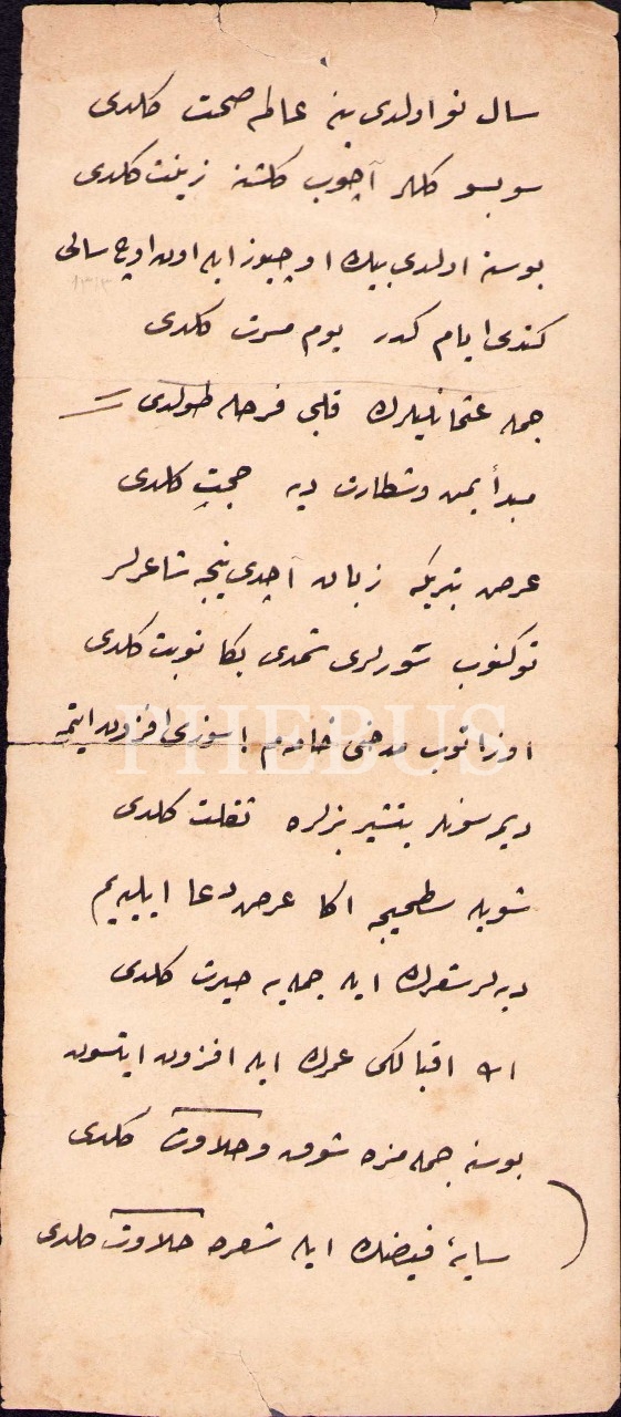 Osmanlıca Rik'a Şiir Yaprağı, 10x22 cm, yıpranmış haliyle