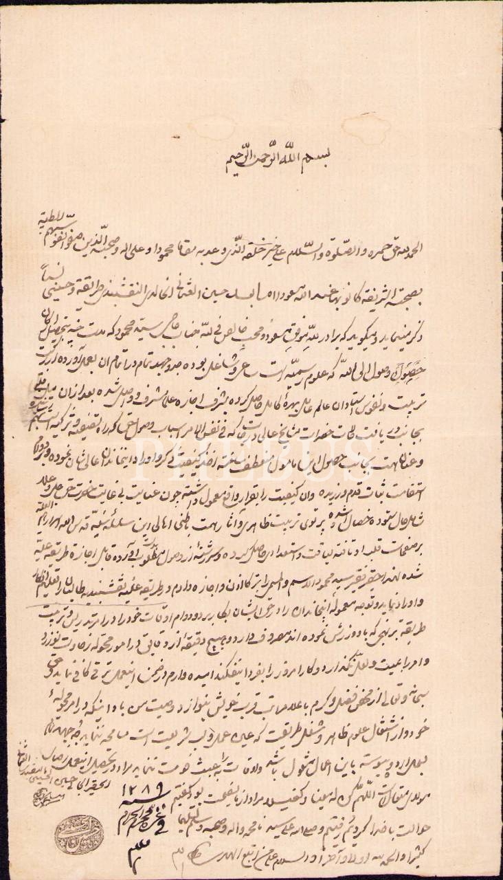 Hüseyin el-Hüseyni Mühürlü ve 1289 Tarihli Farsça Metin, Hüseyin el-Hüseyni en-Nakşibendi el-Osmani, 12x21 cm
