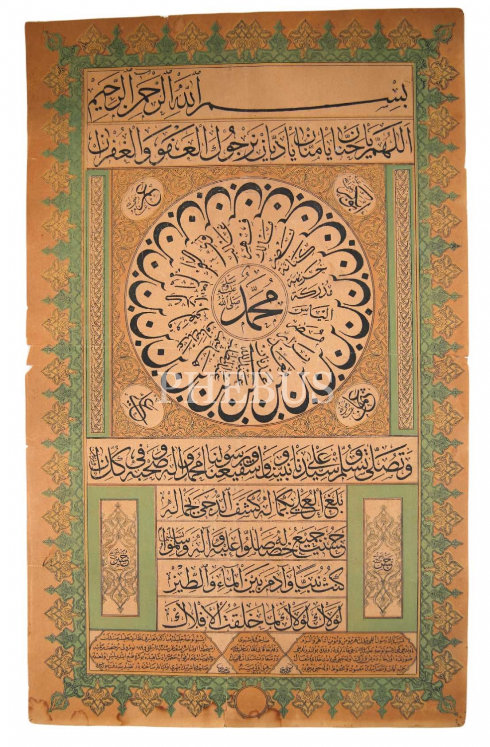 Hz. Muhammed'in Matbu Neseb Levhası, Hüsnü ketebeli, Defter-i Hakânî Nezareti, İstanbul 1315, 27x44 cm, kenarları yırtık haliyle