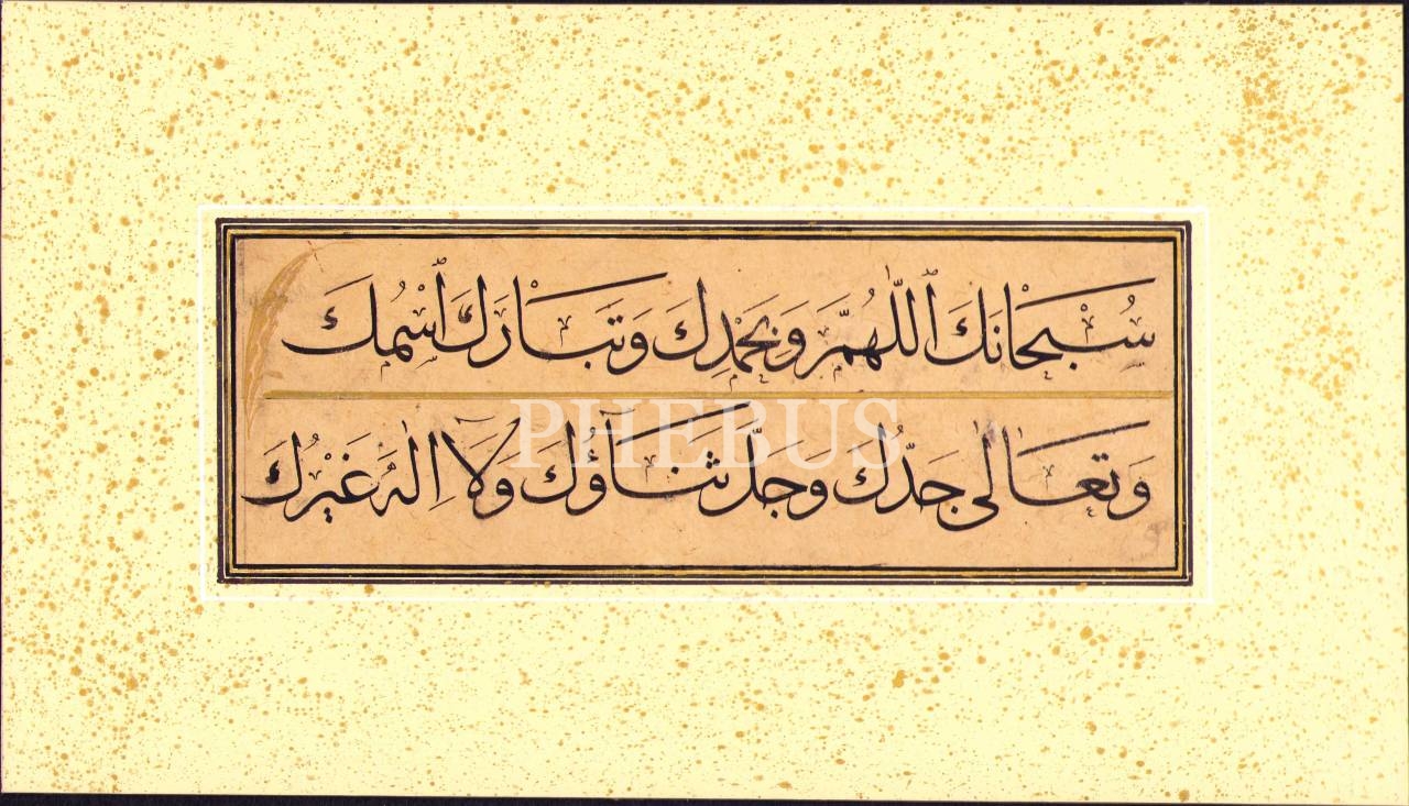 Hoca İşi Sülüs Sübhaneke Duası, altın cetvelli, 7x20 cm