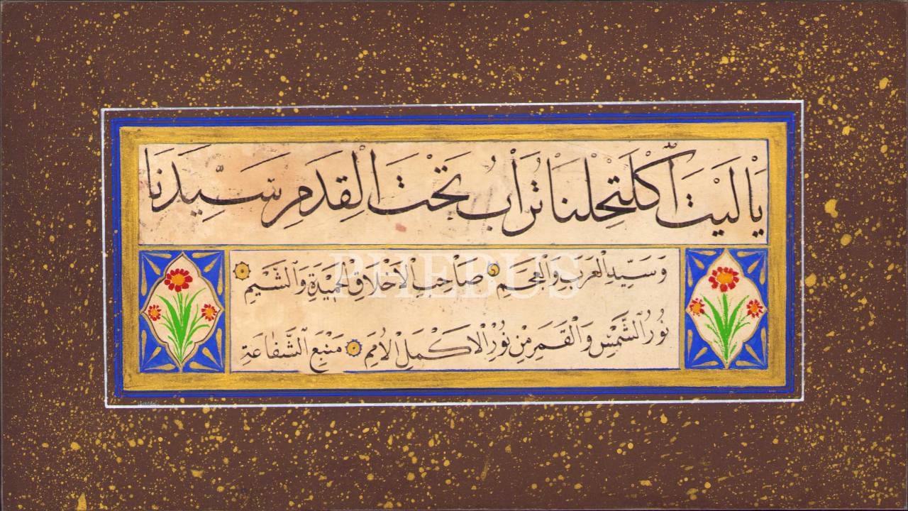 Sülüs-Nesih Levha, altın cetvelli, 7x19 cm