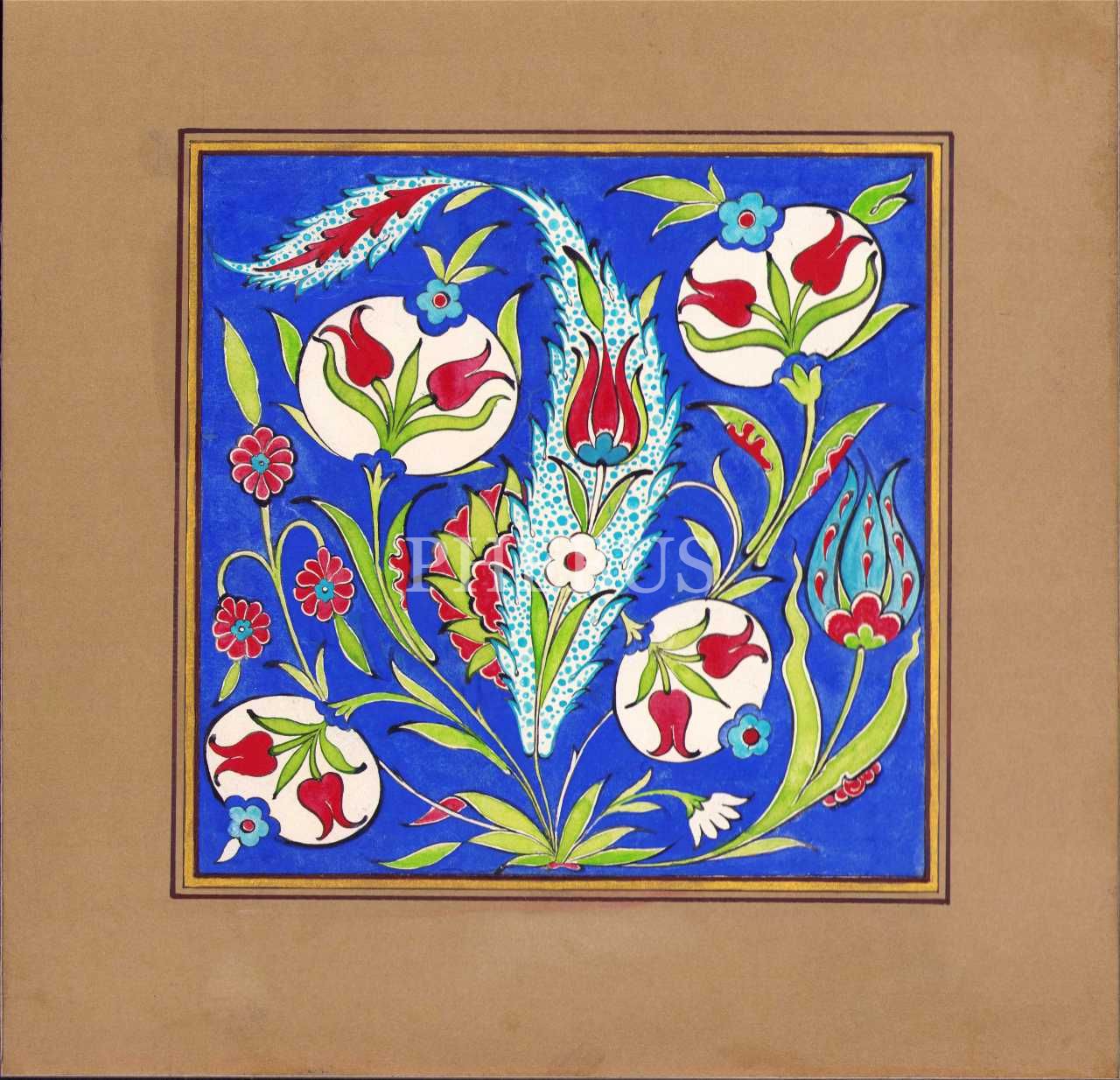 El Çizimi Çini Desen, altın cetvelli, 20x20 cm