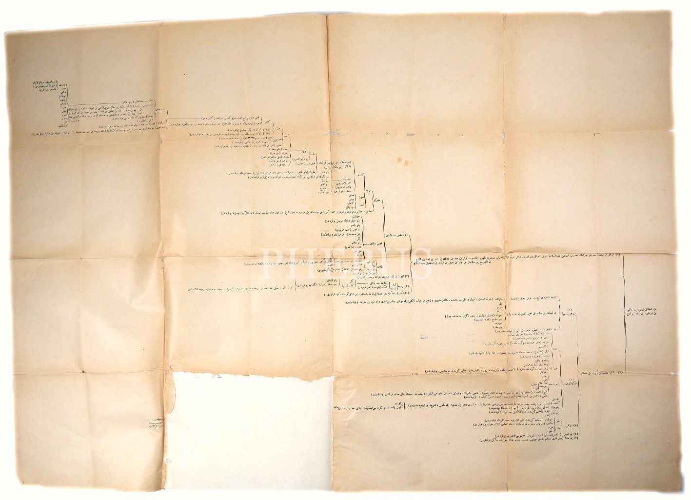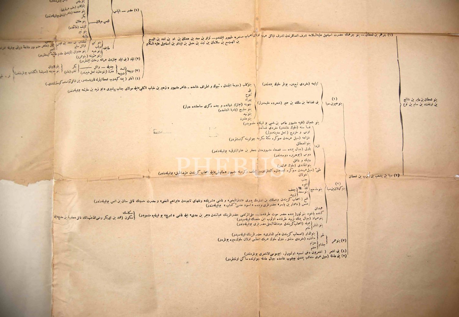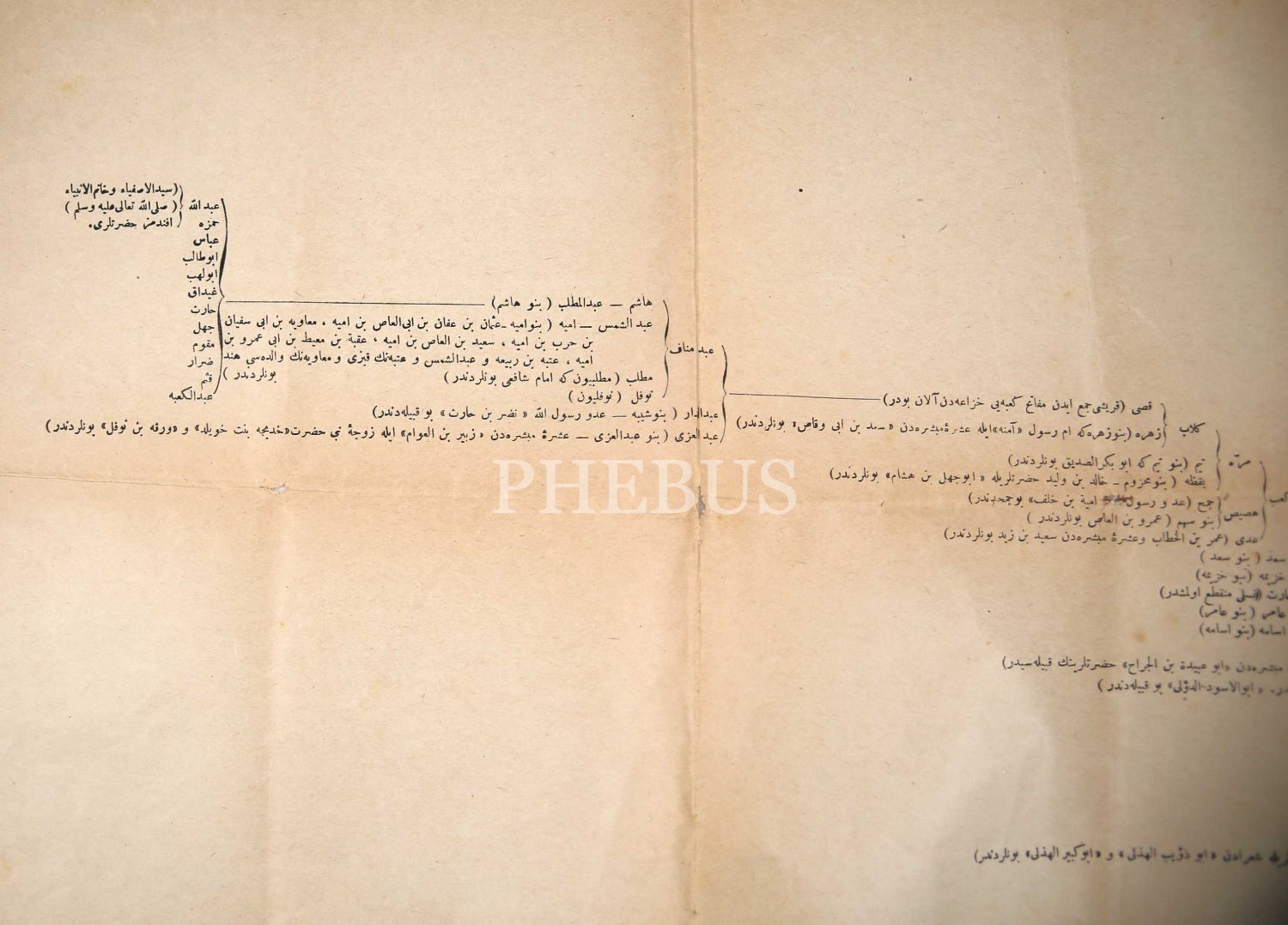 Hz. Muhammed'in Matbu Neseb Silsilesi, 56x80 cm, tamirli ve yıpranmış haliyle