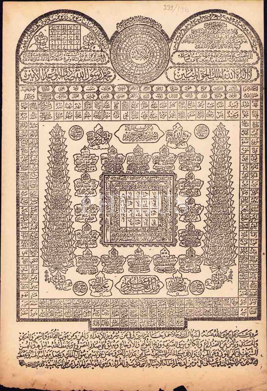 Matbu Vefk, Kur'ân'da adı geçen peygamberler ile Hz. Muhammed'in isimleri yazılı, 26x38 cm