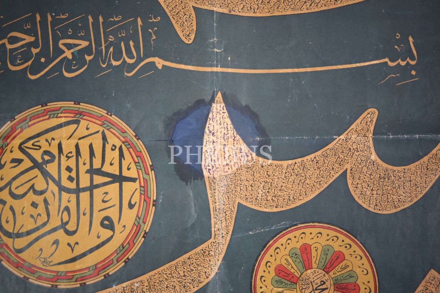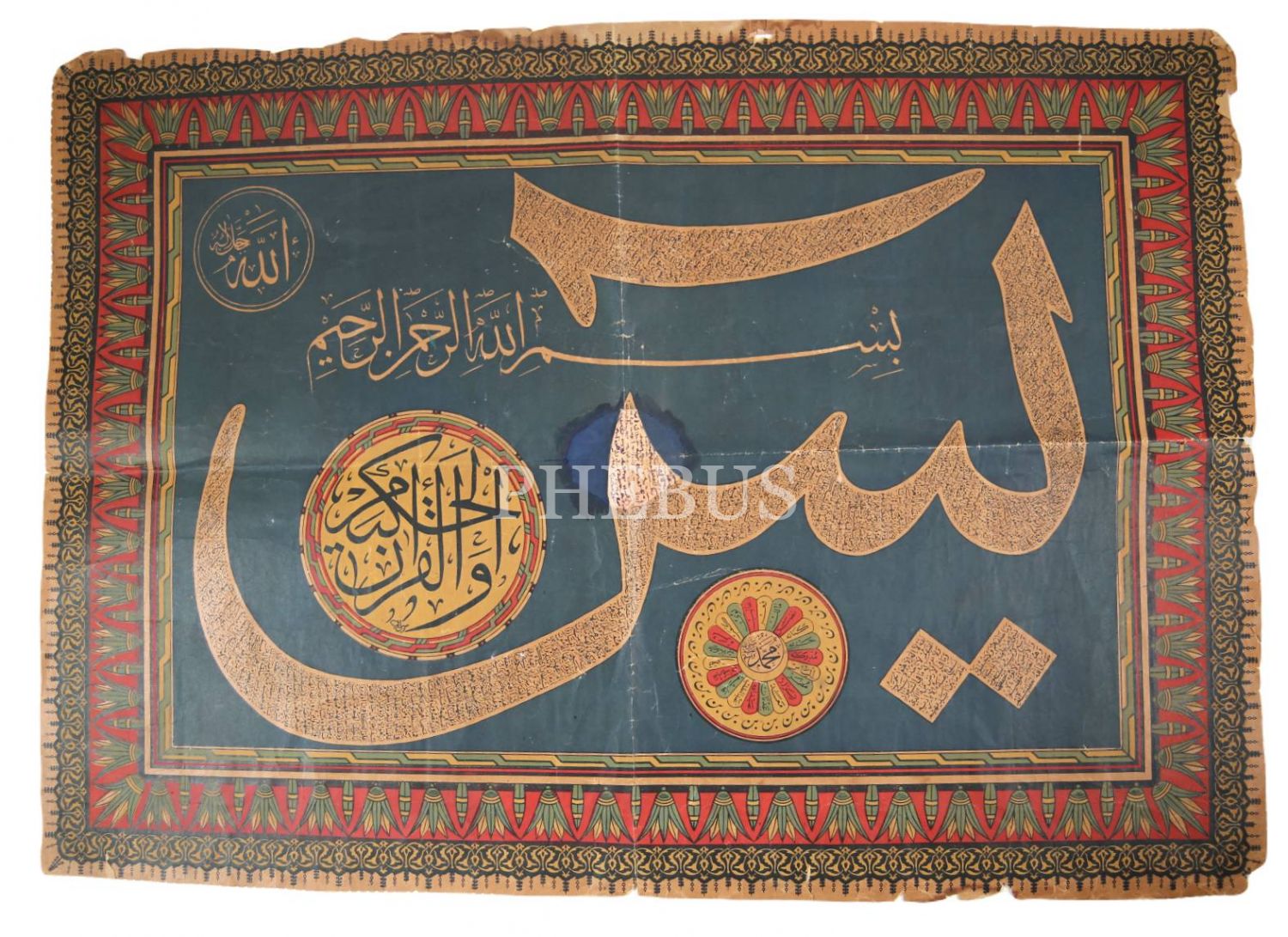 Matbu Gubarî Yazı İle Yâsîn Suresi, 48x66 cm, elle tamirli ve yıpranmış haliyle