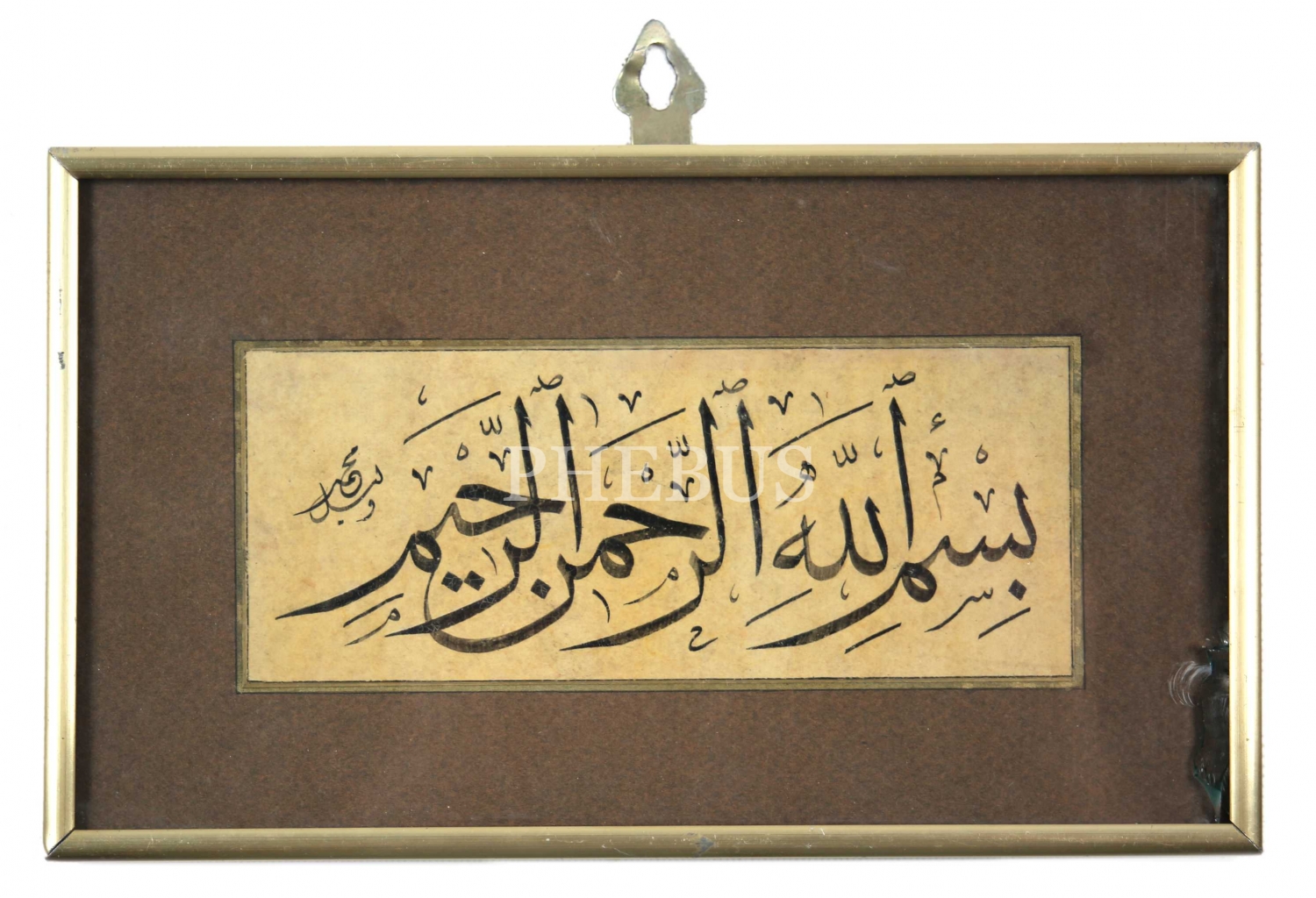 Muhakkak Sülüs Besmele, Velid Muhammed ketebeli, çerçeveli, yazı: 6x14 cm