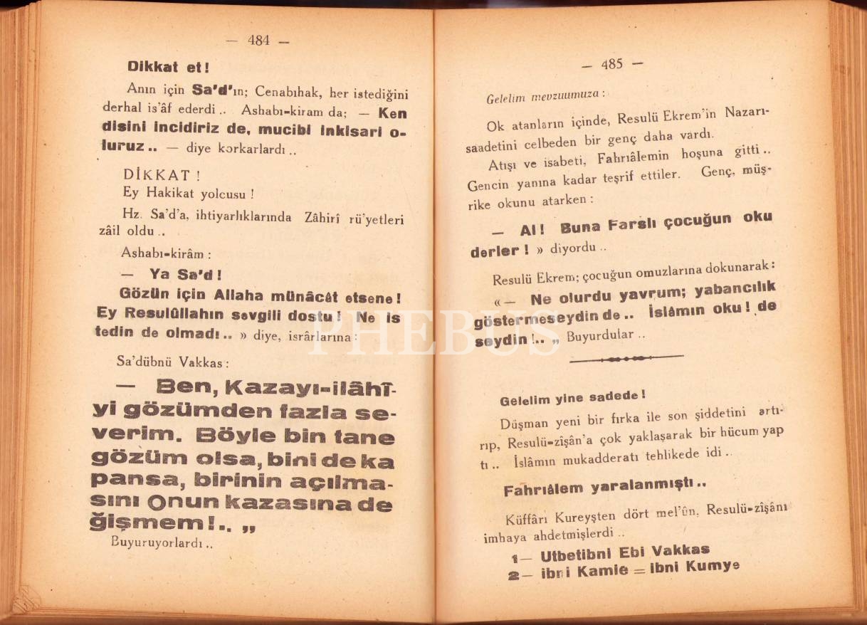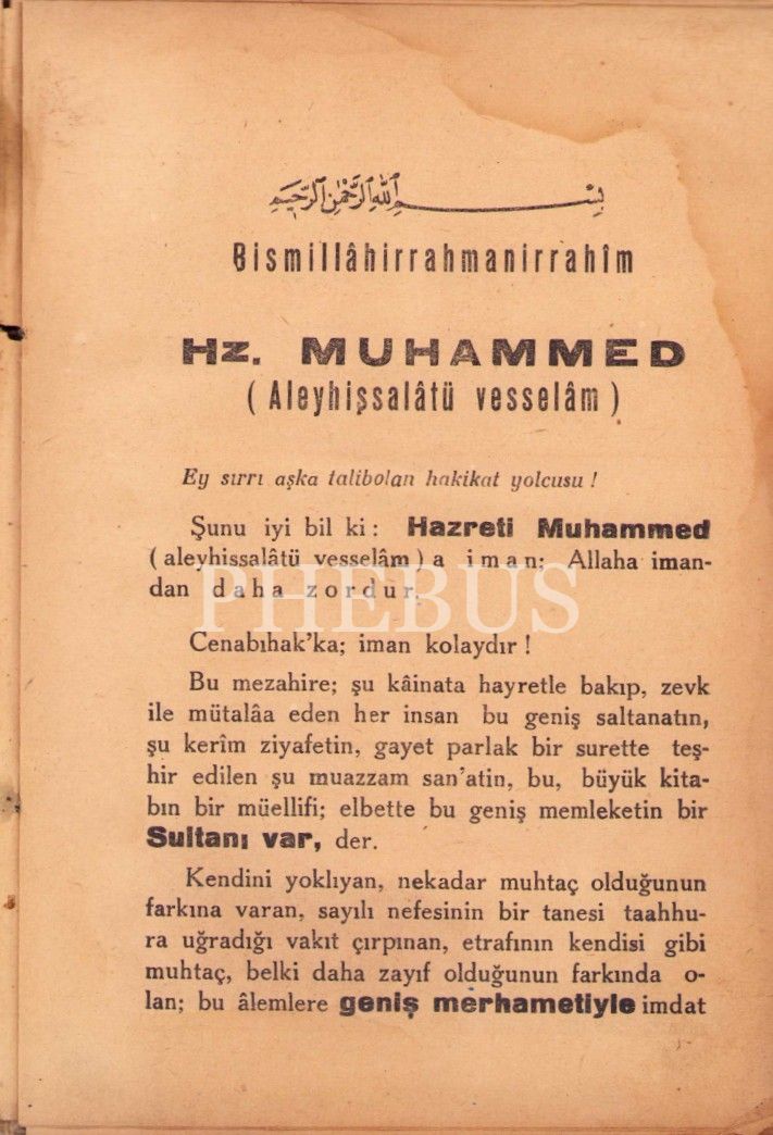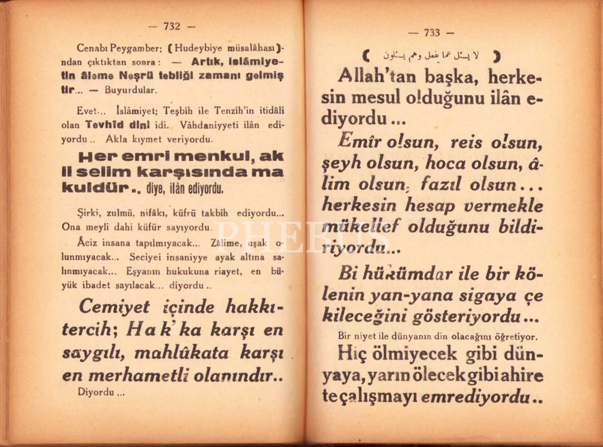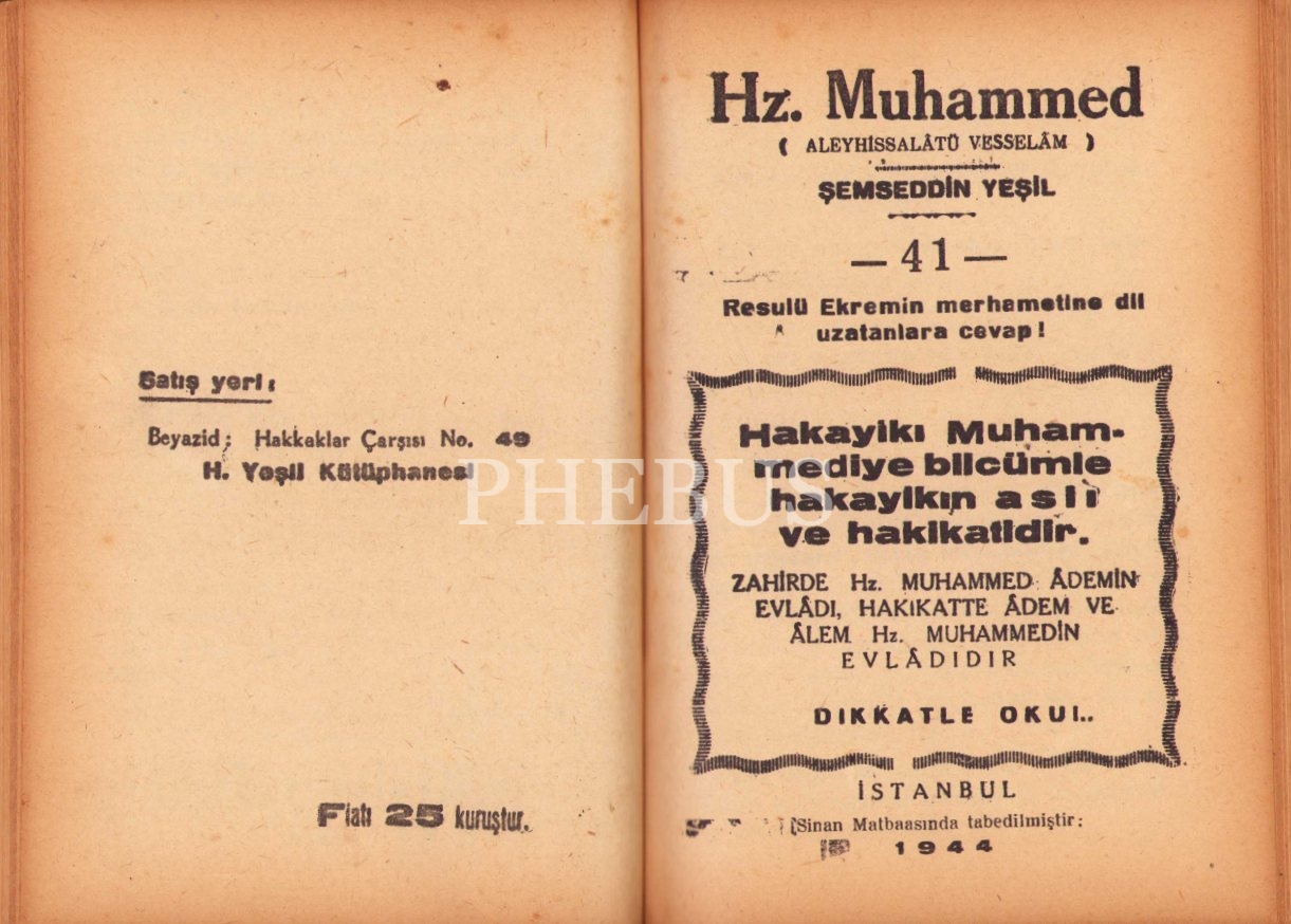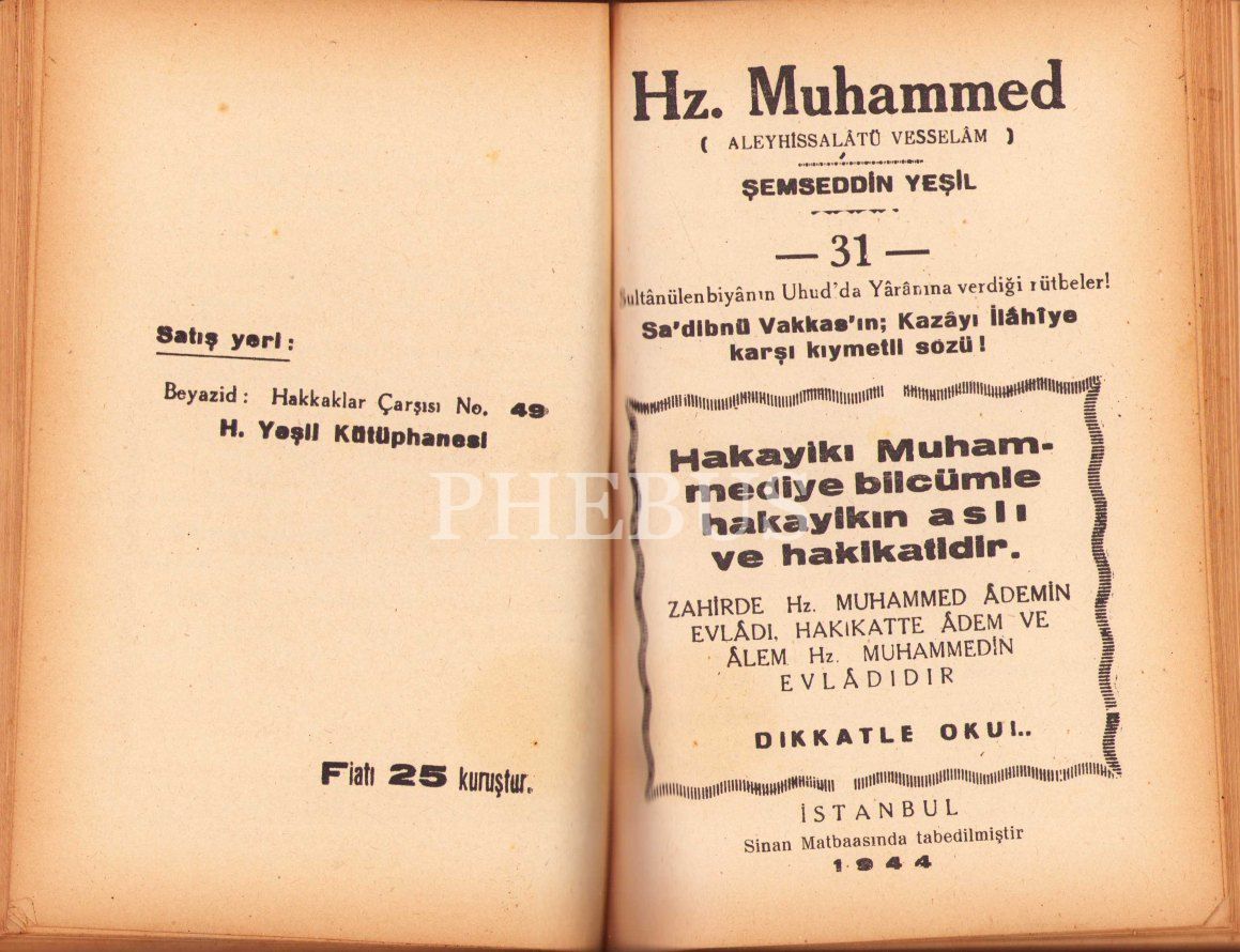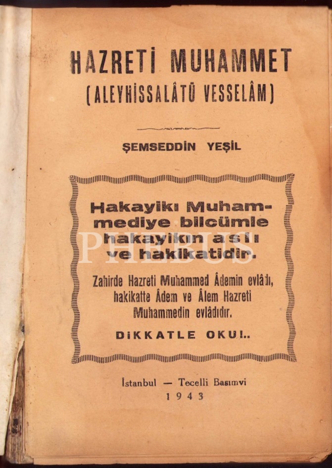 Hazreti Muhammet (Aleyhissalâtü Vesselâm), Şemseddin Yeşil, Tecelli ve Aydınlık Basımevi, İstanbul 1943-44, 848 s., 14x20 cm, yıpranmış haliyle