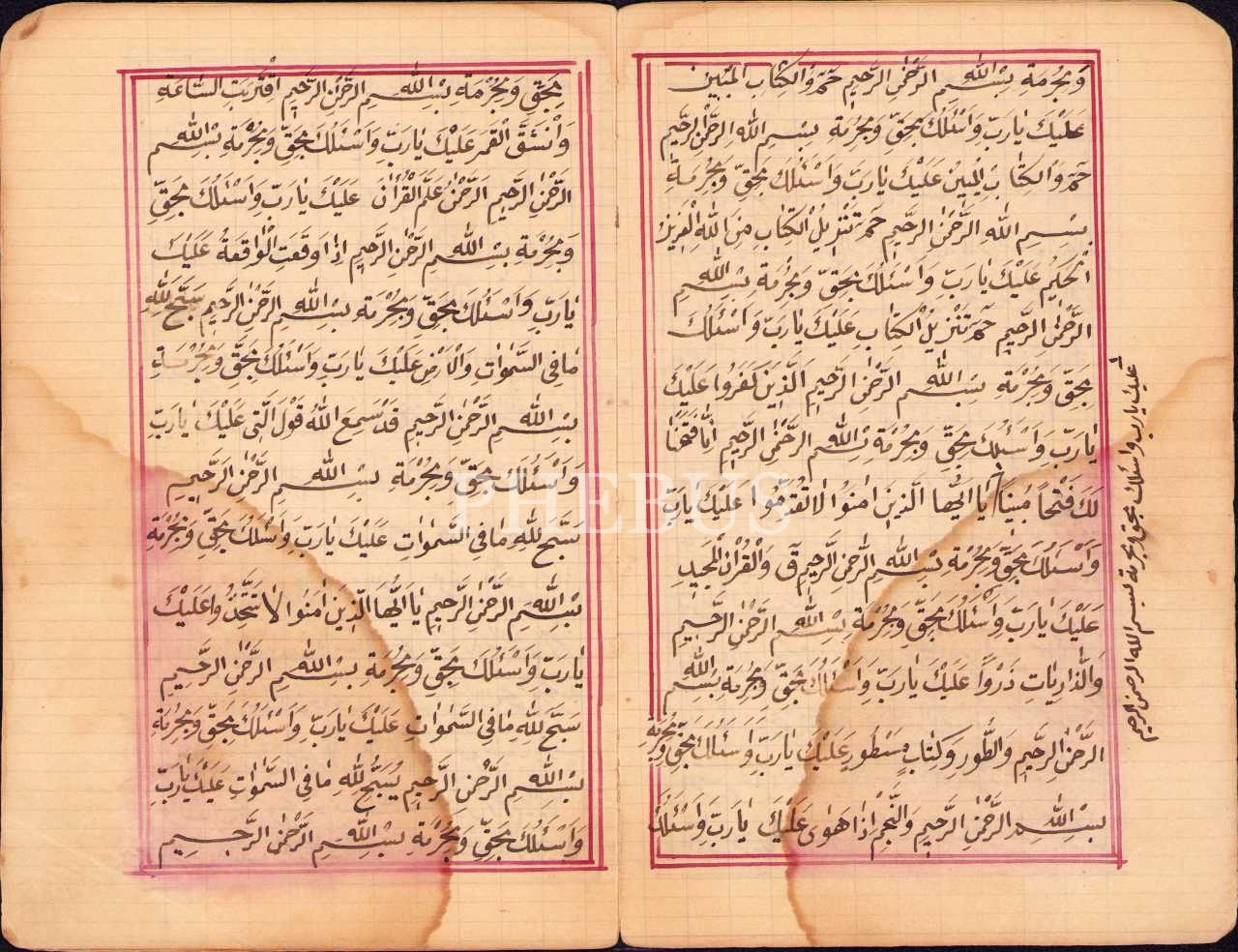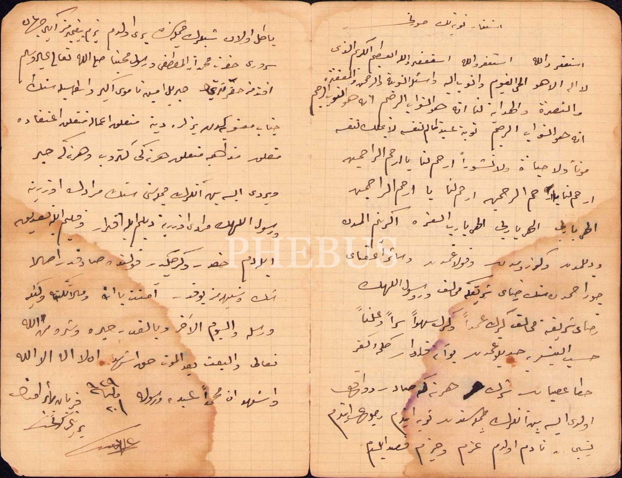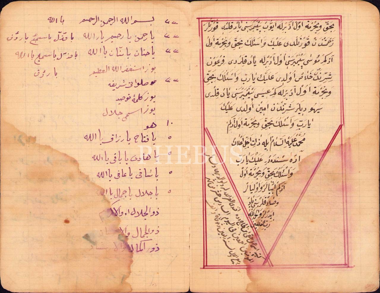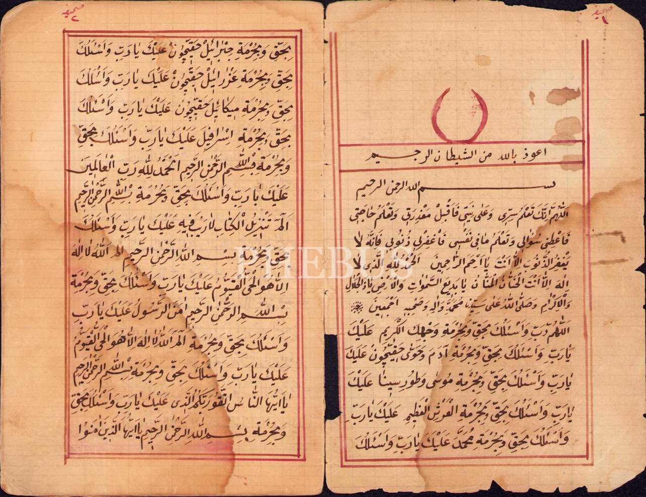 Arapça-Osmanlıca Evrad ve Dua Defteri, İsmail Hakkı ketebeli ve 1340 tarihli, 12 varak, 13x20 cm, su görmüş ve ciltsiz haliyle