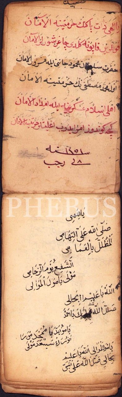 Arapça-Osmanlıca İlahi ve Hutbeler İçeren Cönk, 1251 tarihli, 19 varak, 11x18 cm, yıpranmış haliyle