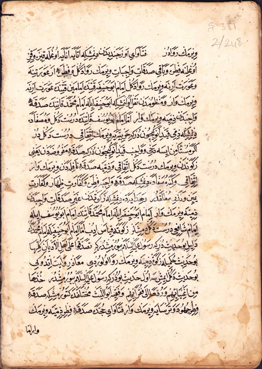 Osmanlıca Nasihatname, 33 varak [başı ve sonu eksik], 21x29 cm, ciltsiz haliyle