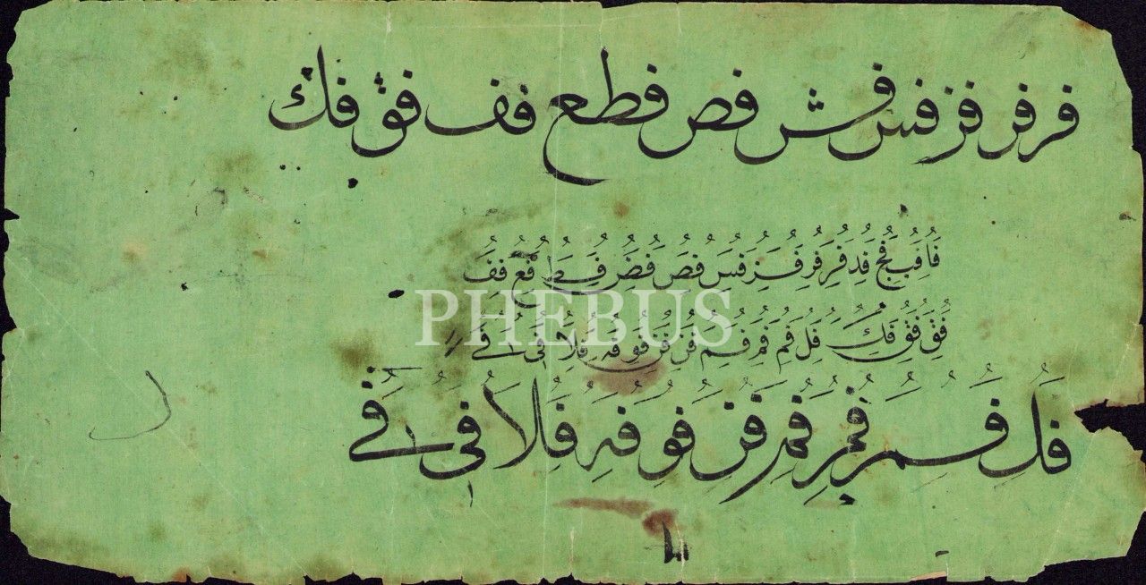 Sülüs Nesih Hurufât Meşki, 24x12 cm, kenarları yıpranmış haliyle