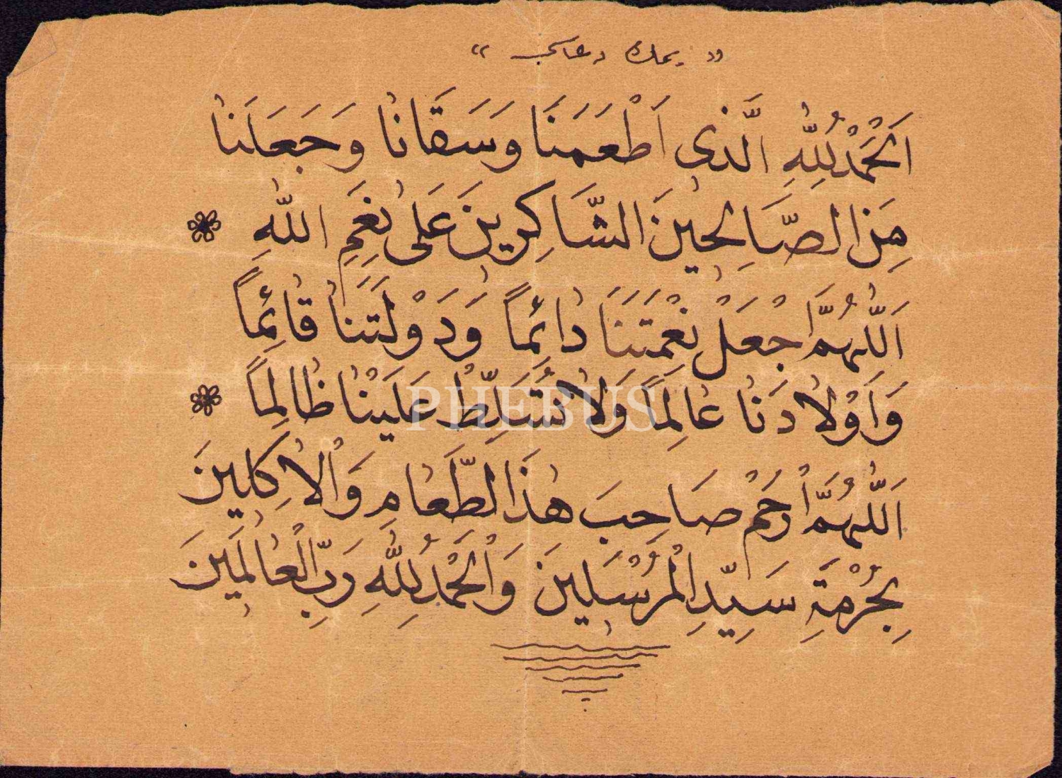 Sülüs Yazı ile Arapça Yemek Duası, 17x13 cm