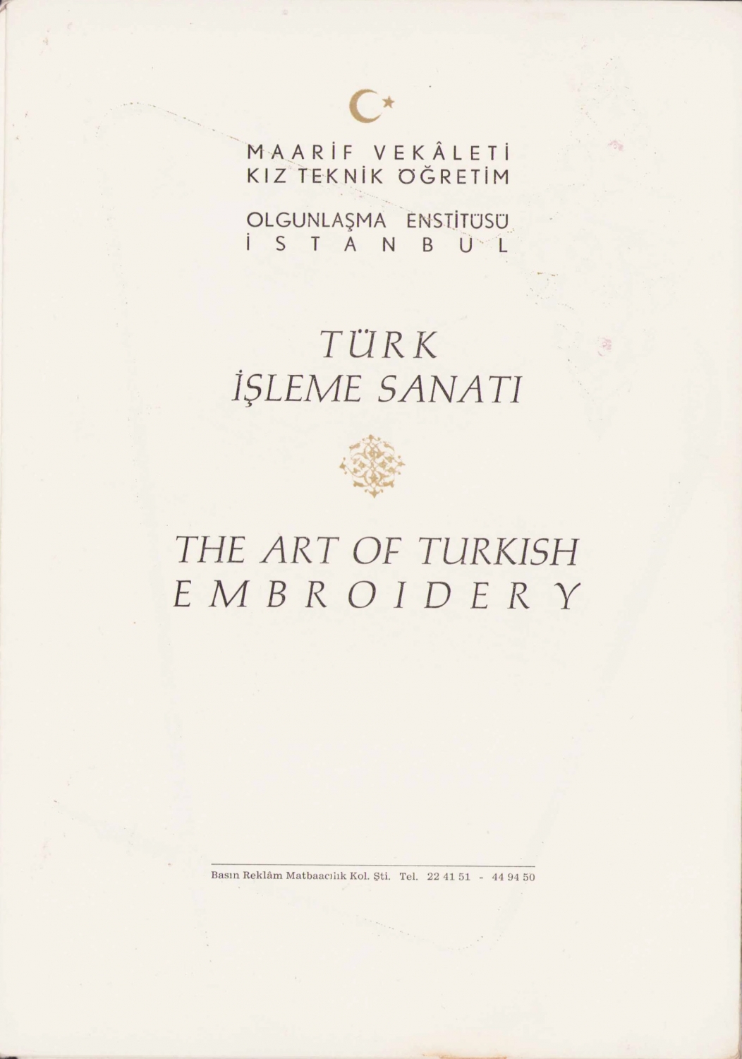 Türk İşleme Sanatı, Maarif Vekaleti Kız Teknik Öğretim Olgunlaşma Enstitüsü, İstanbul, görselli, 15 sayfa, 16x24cm