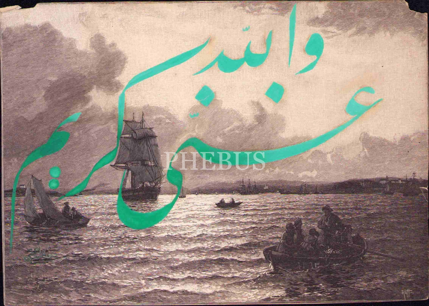 Ta'lik Yazı "Vallâhu Ganiyyun Kerîmun [Allah hiçbir şeye muhtaç olmayan ve kerimdir]", 19x14 cm, köşeleri kopuk haliyle