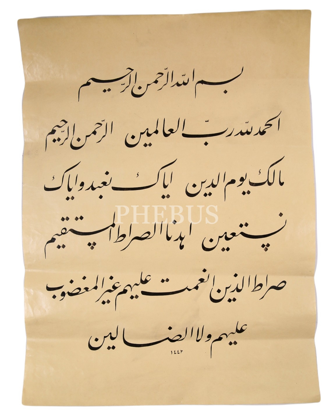 Ta'lik Yazı ile Fâtiha Suresi, 1442 tarihli, 34x45 cm