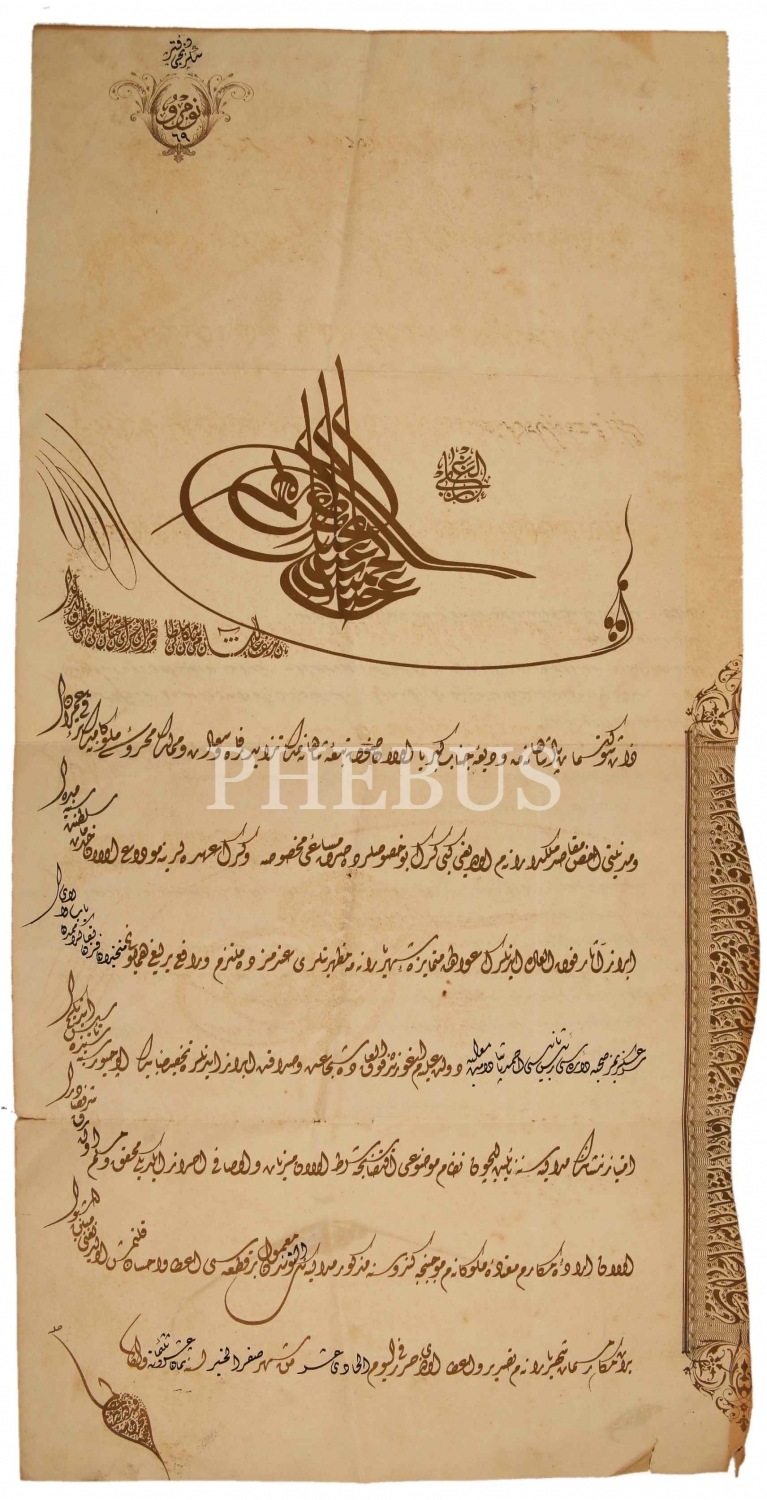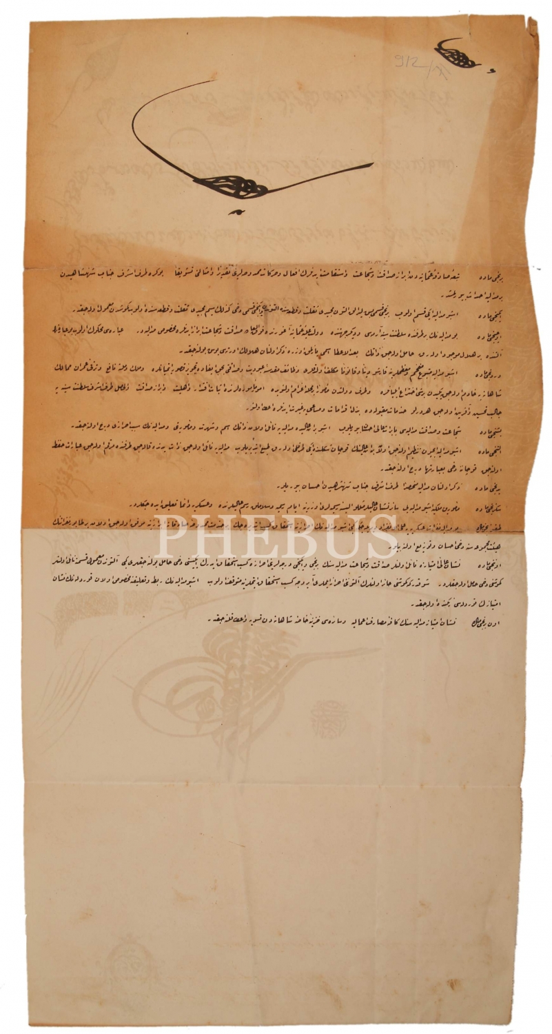 Osmanlıca Sultan Abdülhamid Tuğralı İmtiyaz Nişanı Beratı, Sıhhiye Dairesinden Hamid Paşa'ya Verilmiş, 27x56 cm