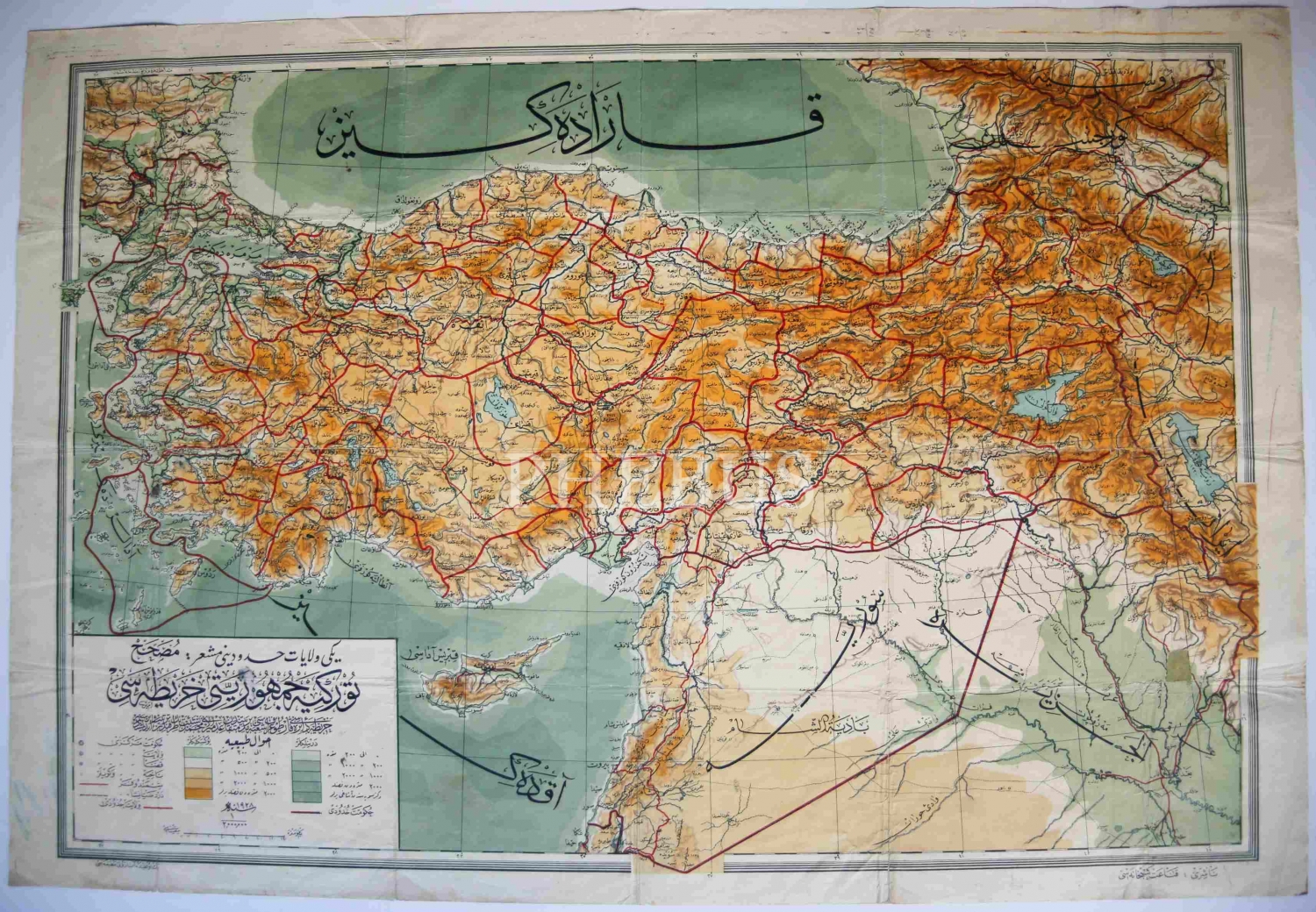Büyük Boy Osmanlıca Türkiye Cumhuriyeti Haritası, 1928 tarihli, Nâşiri: Kanaat Kütüphanesi, Abajuli Matbaası, 96x65 cm